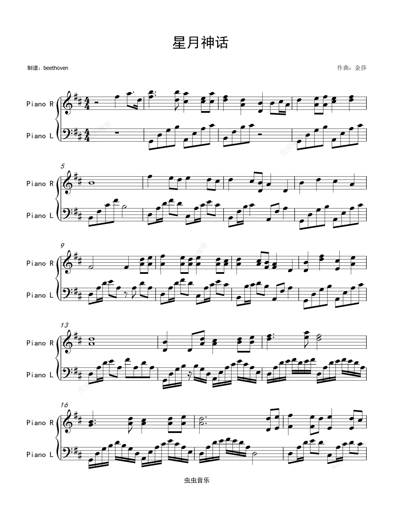 钢琴谱:星月神话-金莎