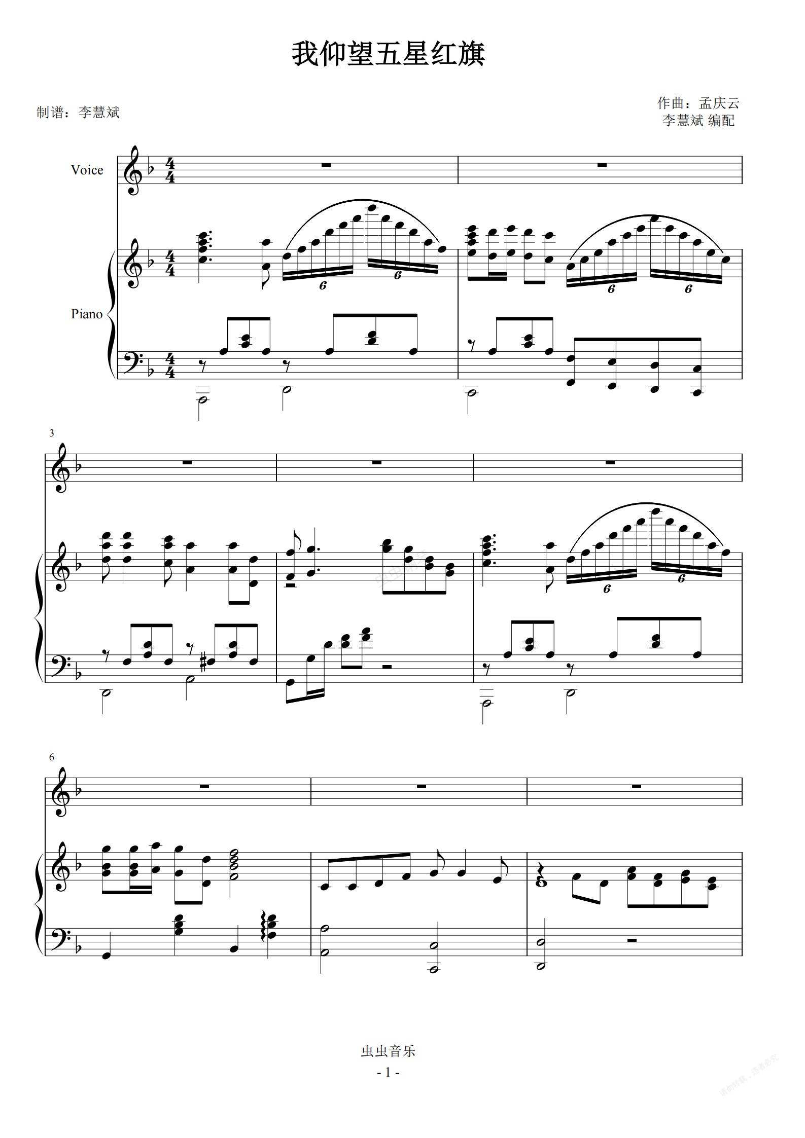 钢琴谱:我仰望五星红旗