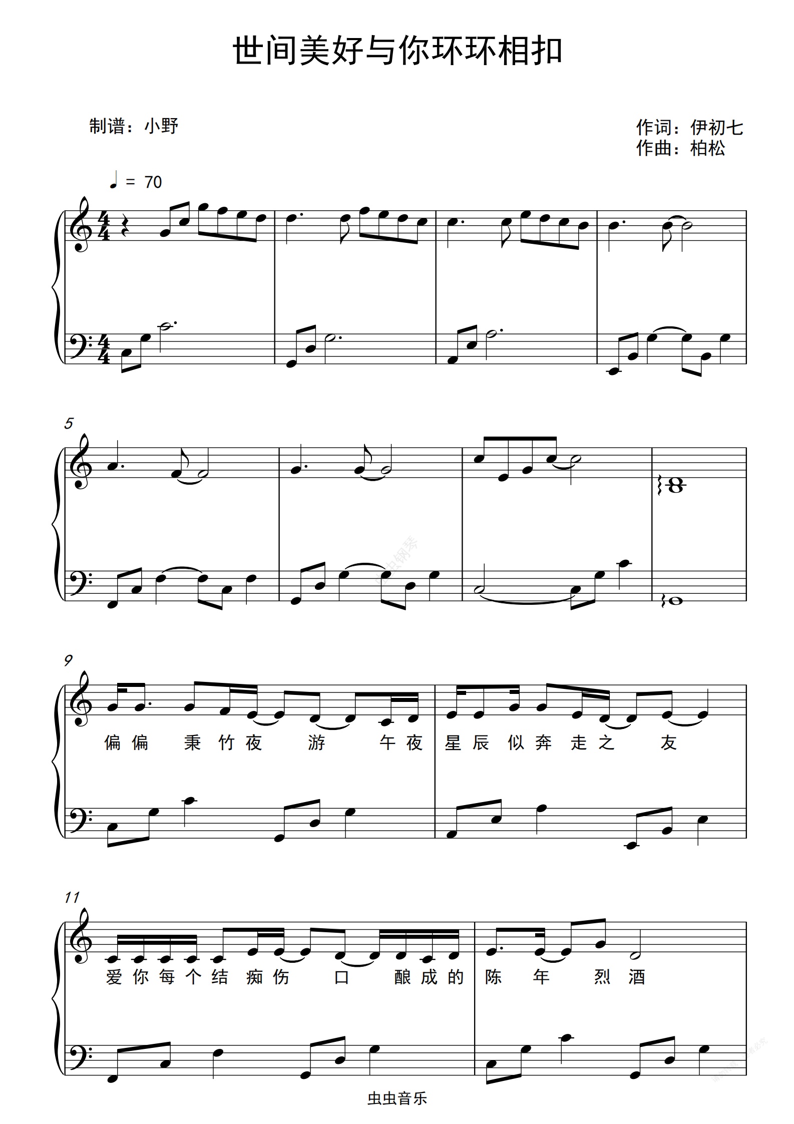 钢琴谱:世间美好与你环环相扣