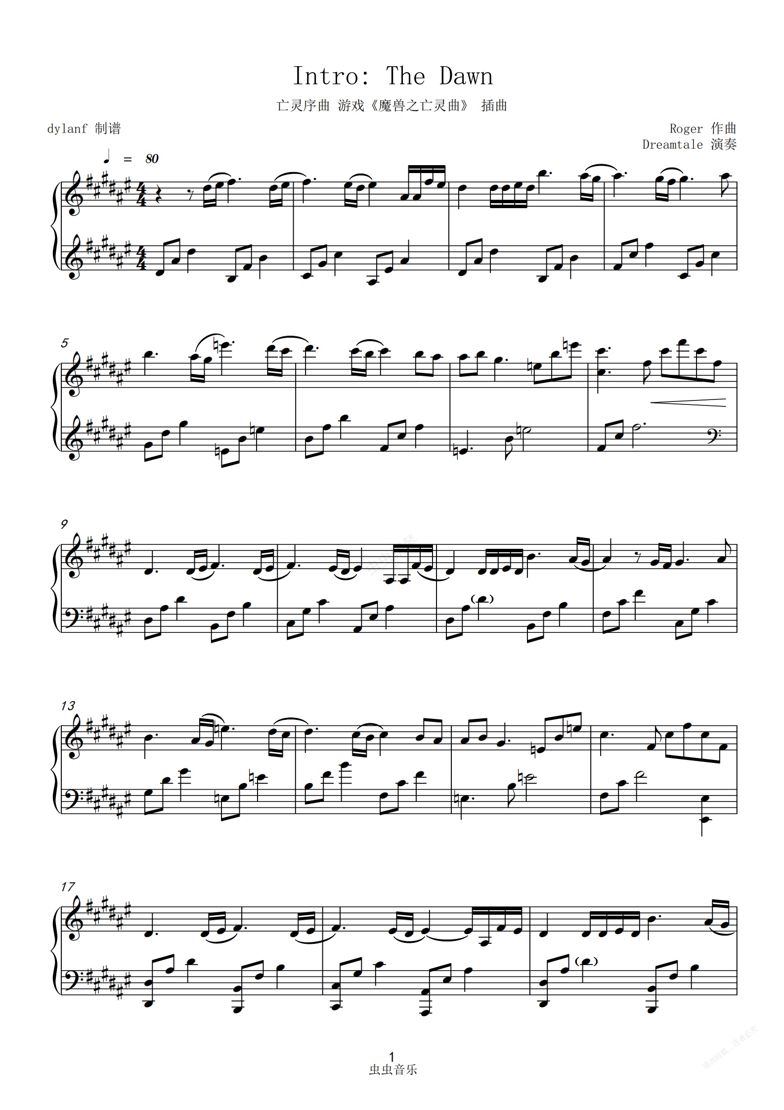 钢琴谱:Intro: The Dawn亡灵序曲 原版 高还原《Beyond Reality》Dreamtale