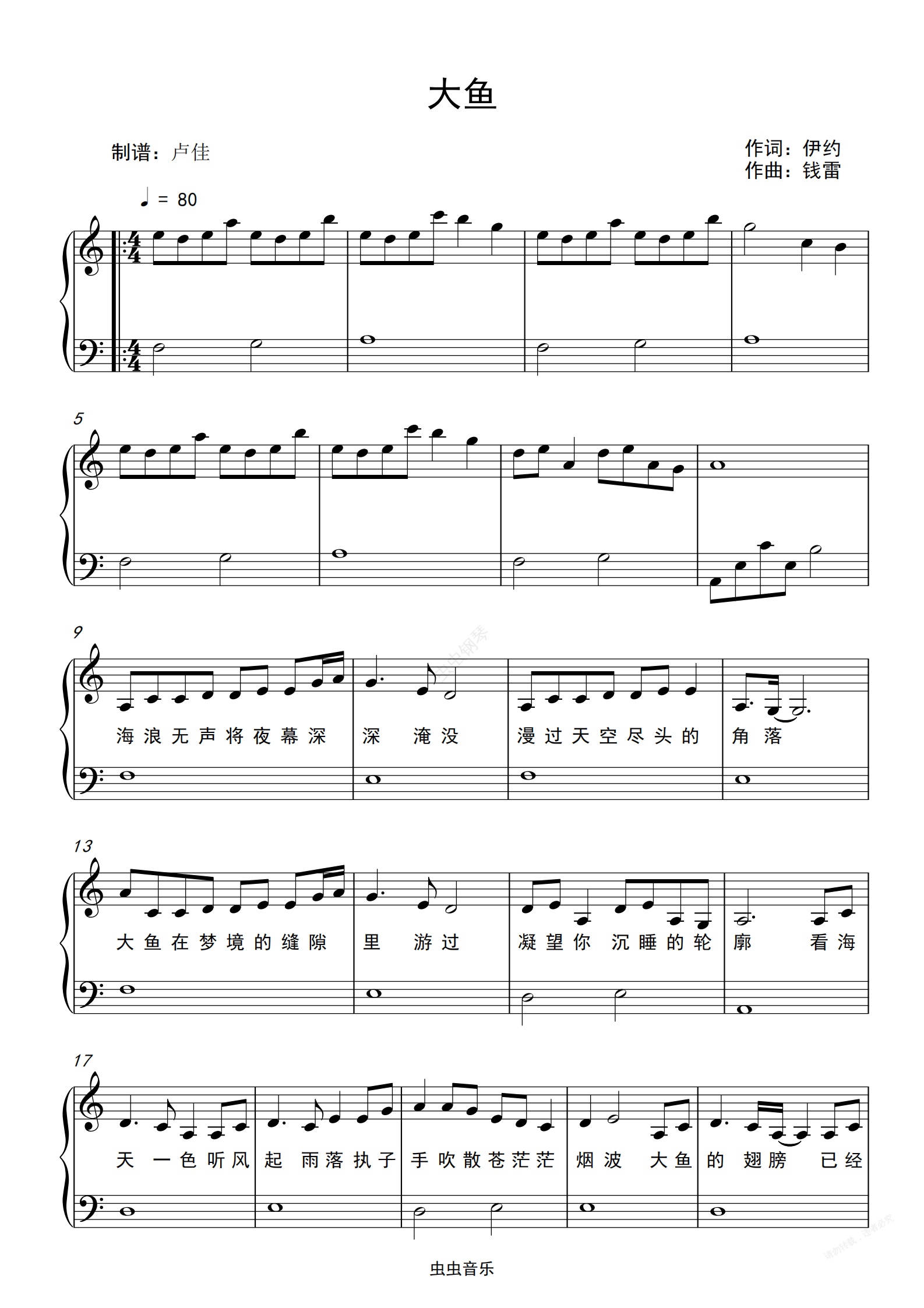 钢琴谱:大鱼