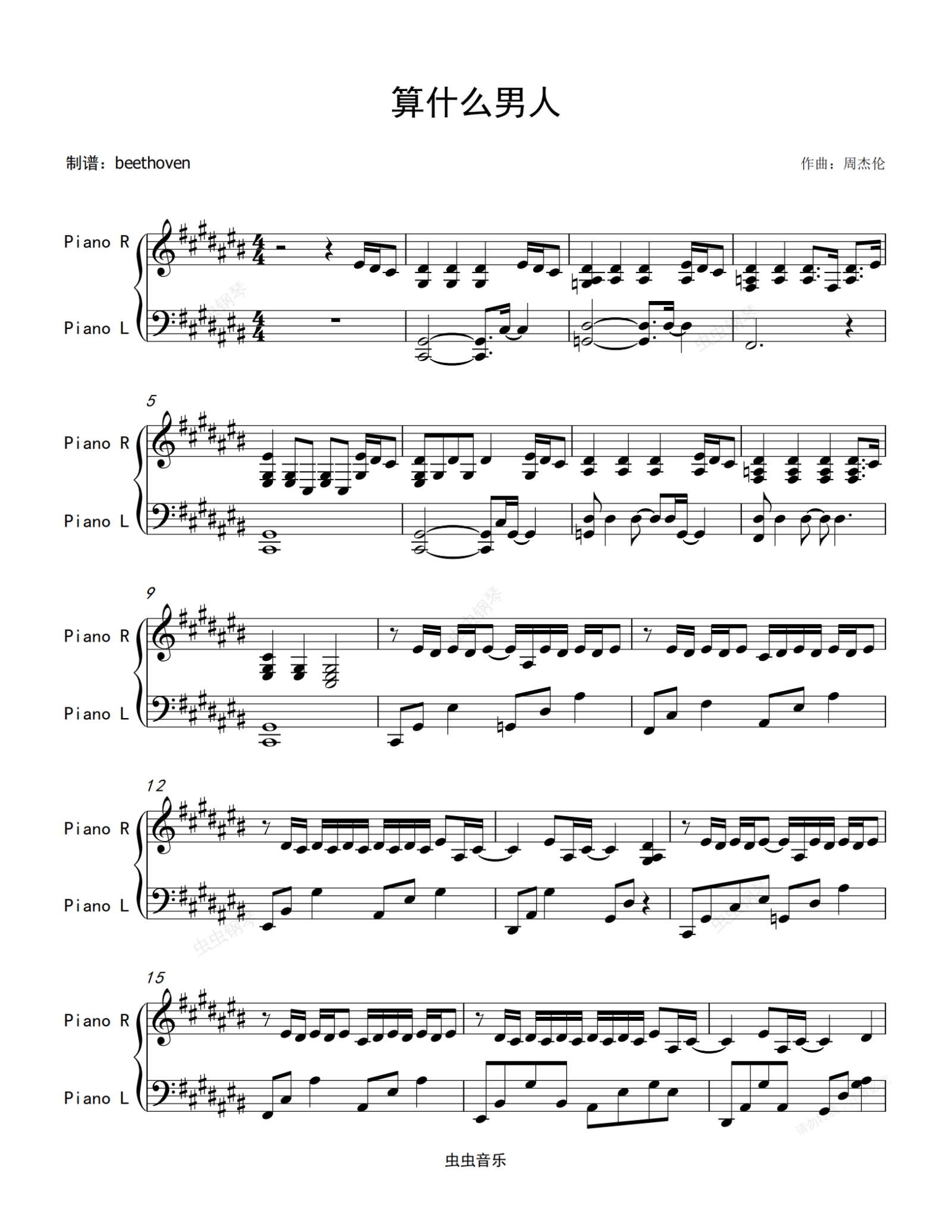 钢琴谱:《算什么男人》周杰伦钢琴独奏原版