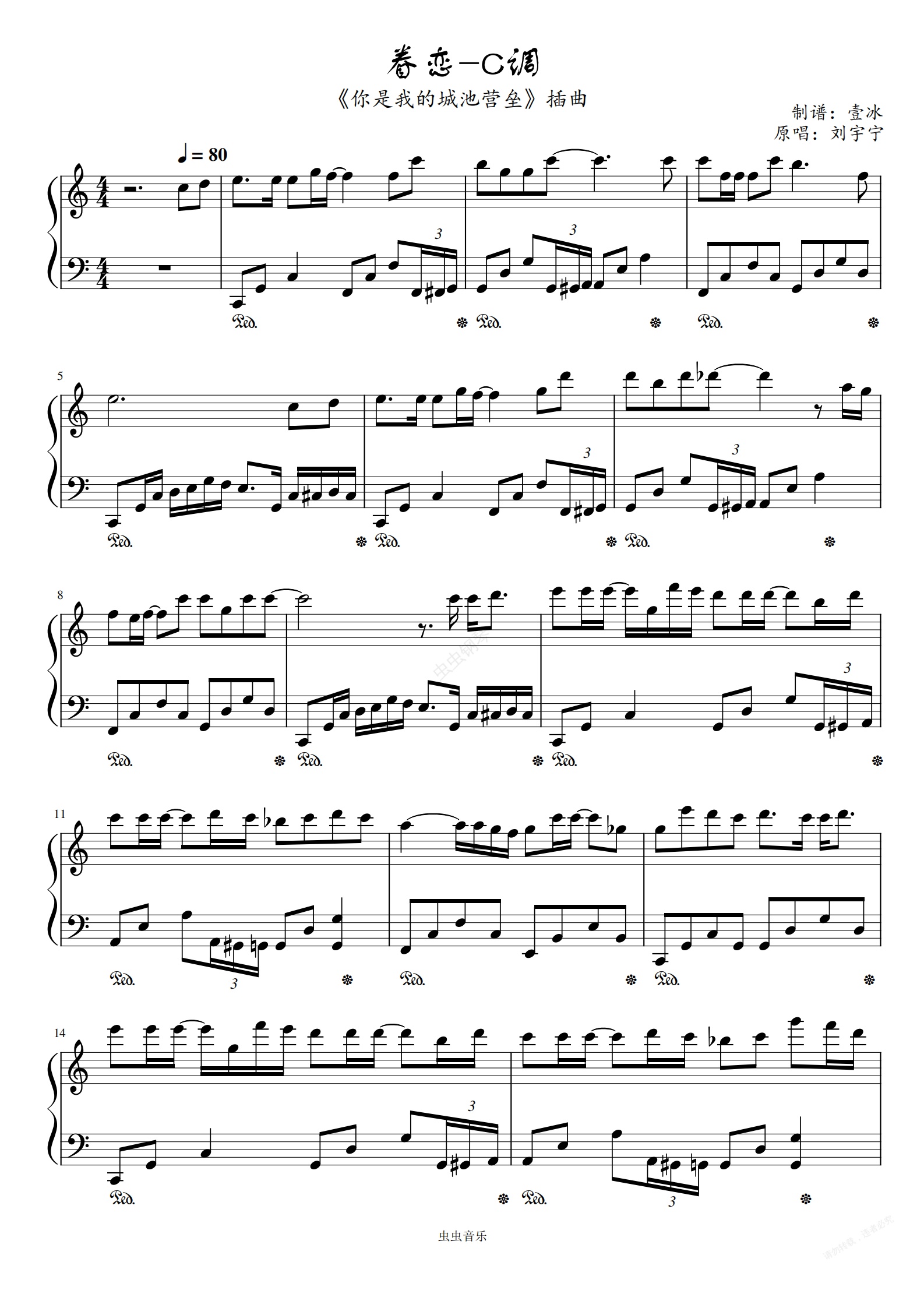 钢琴谱:眷恋//《你是我的城池营垒》插曲刘宇宁-C调简单易上手