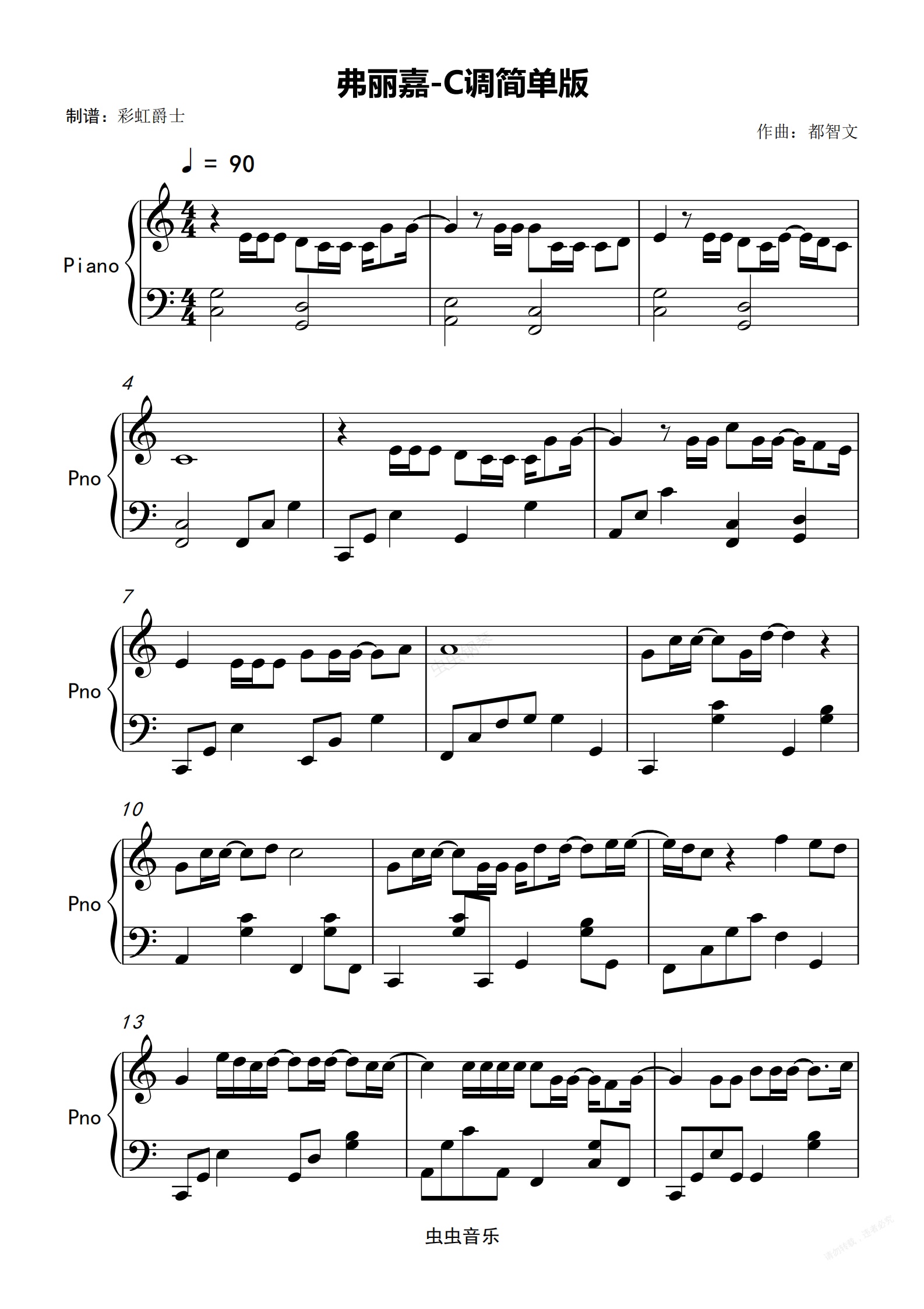 钢琴谱:弗丽嘉  C调  简单版  我的时代你的时代插曲