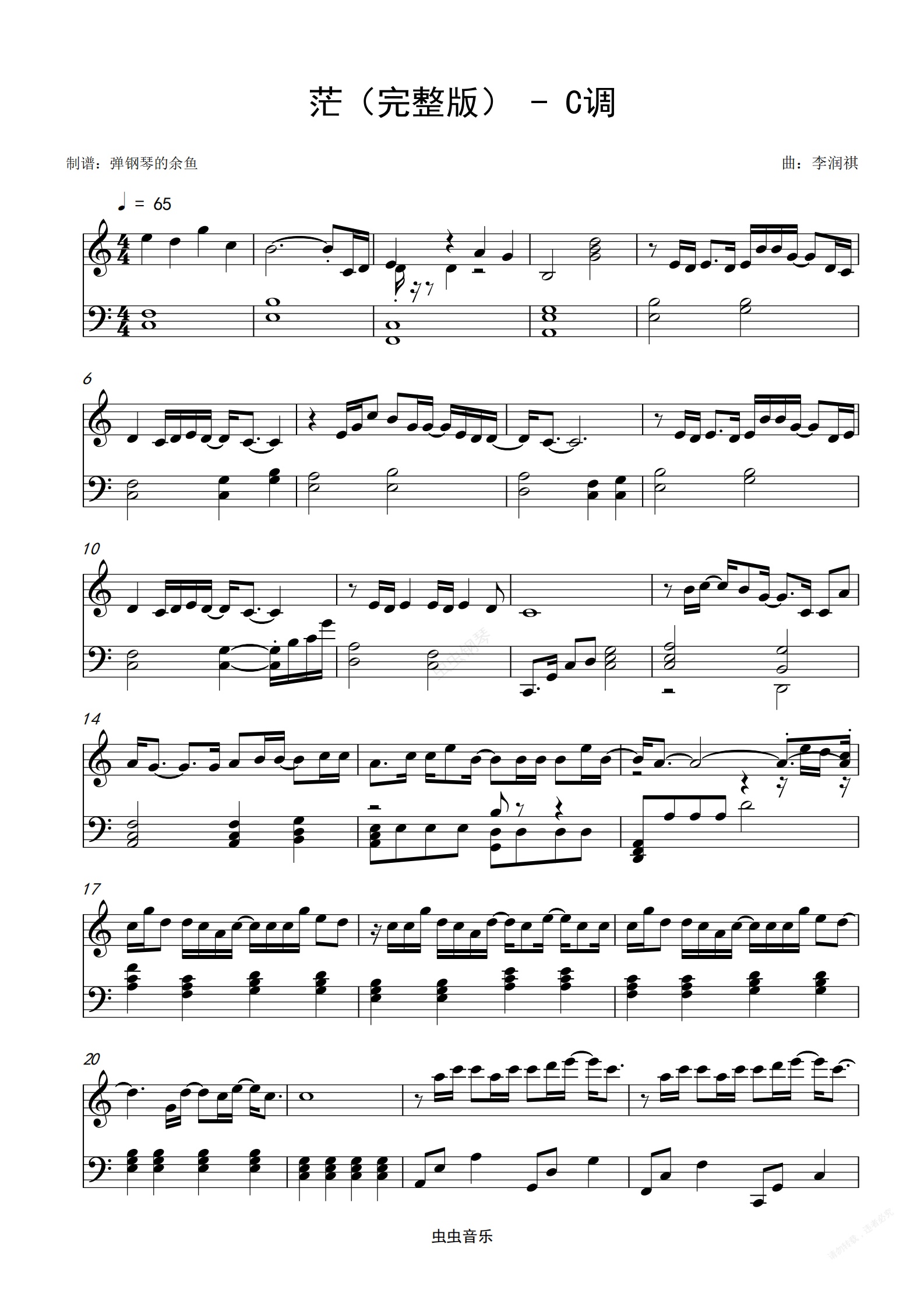 钢琴谱:茫-完整版-C调新手好听易学-弹钢琴的余鱼编配-抖音热歌