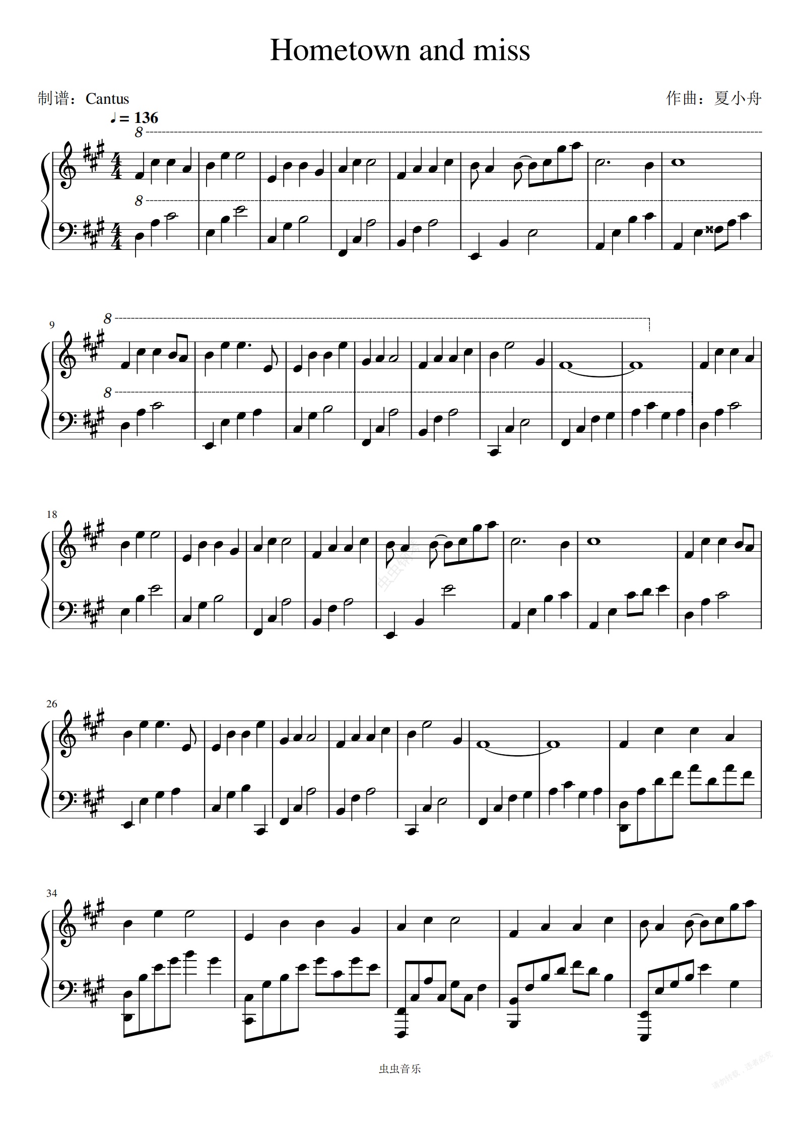 钢琴谱:Hometown and miss/故乡与怀念-夏小舟