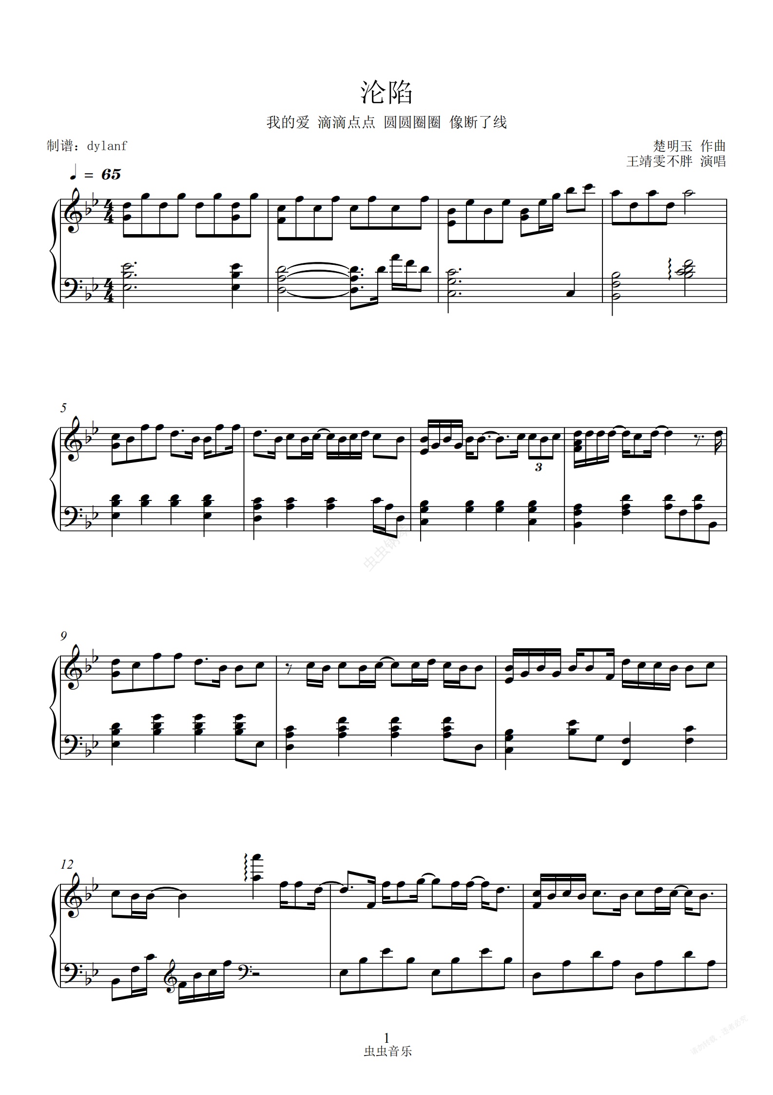 钢琴谱:沦陷(唯美版)高度还原 王靖雯不胖
