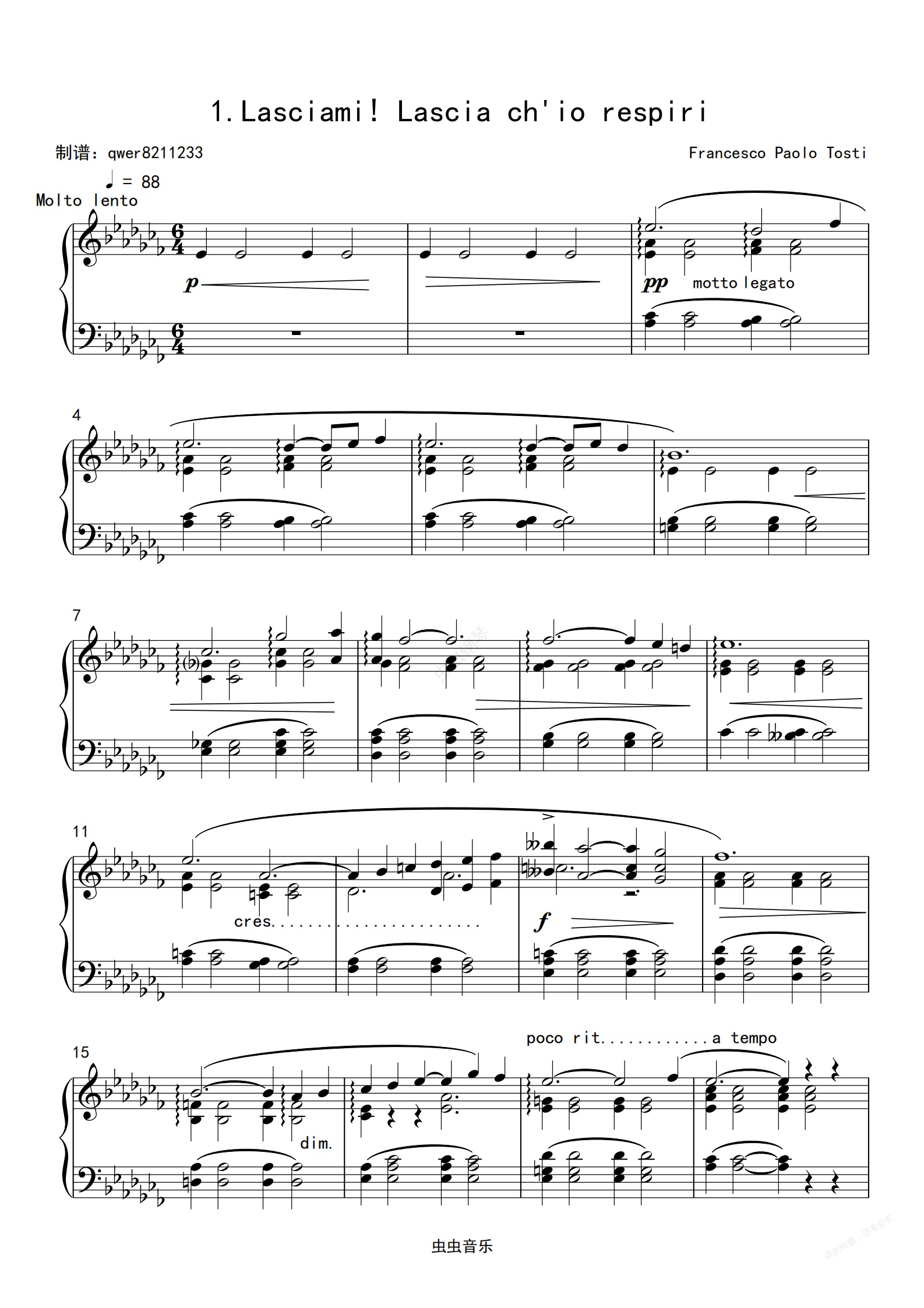 钢琴谱:Lasciami! Lascia ch'io respiri