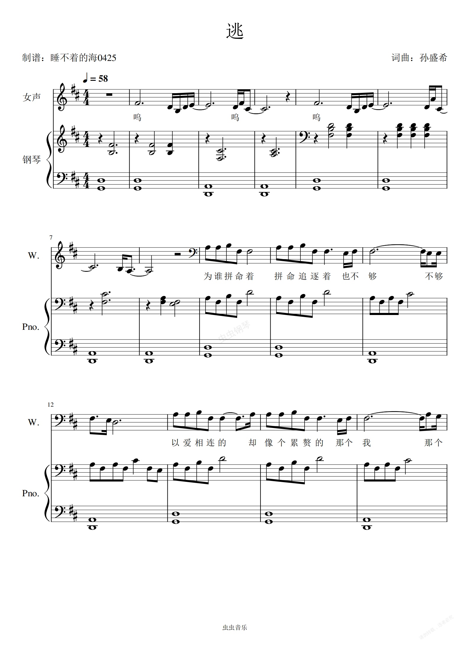 钢琴谱:逃 《想见你》插曲 弹唱谱