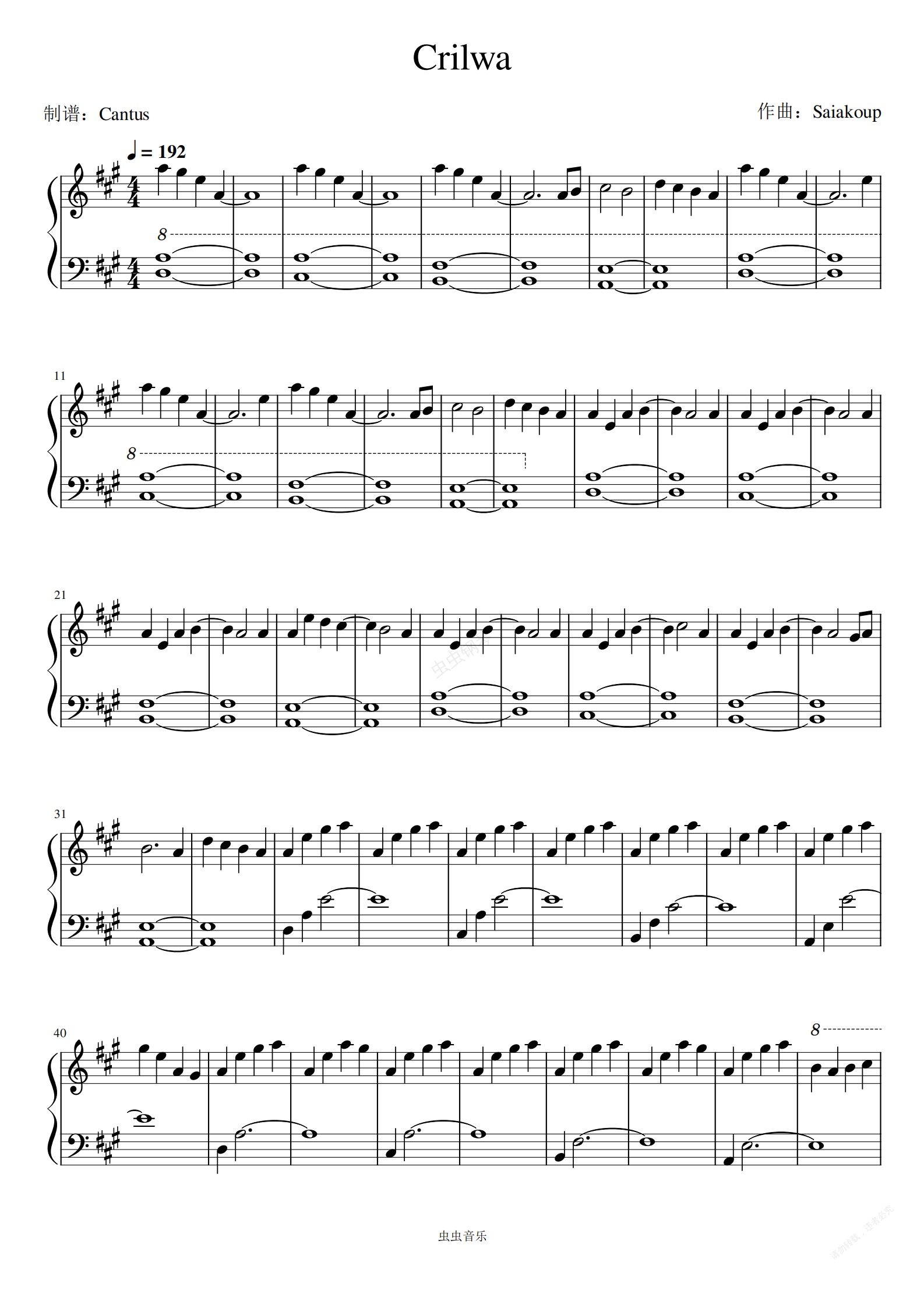 钢琴谱:Crilwa-Saiakoup