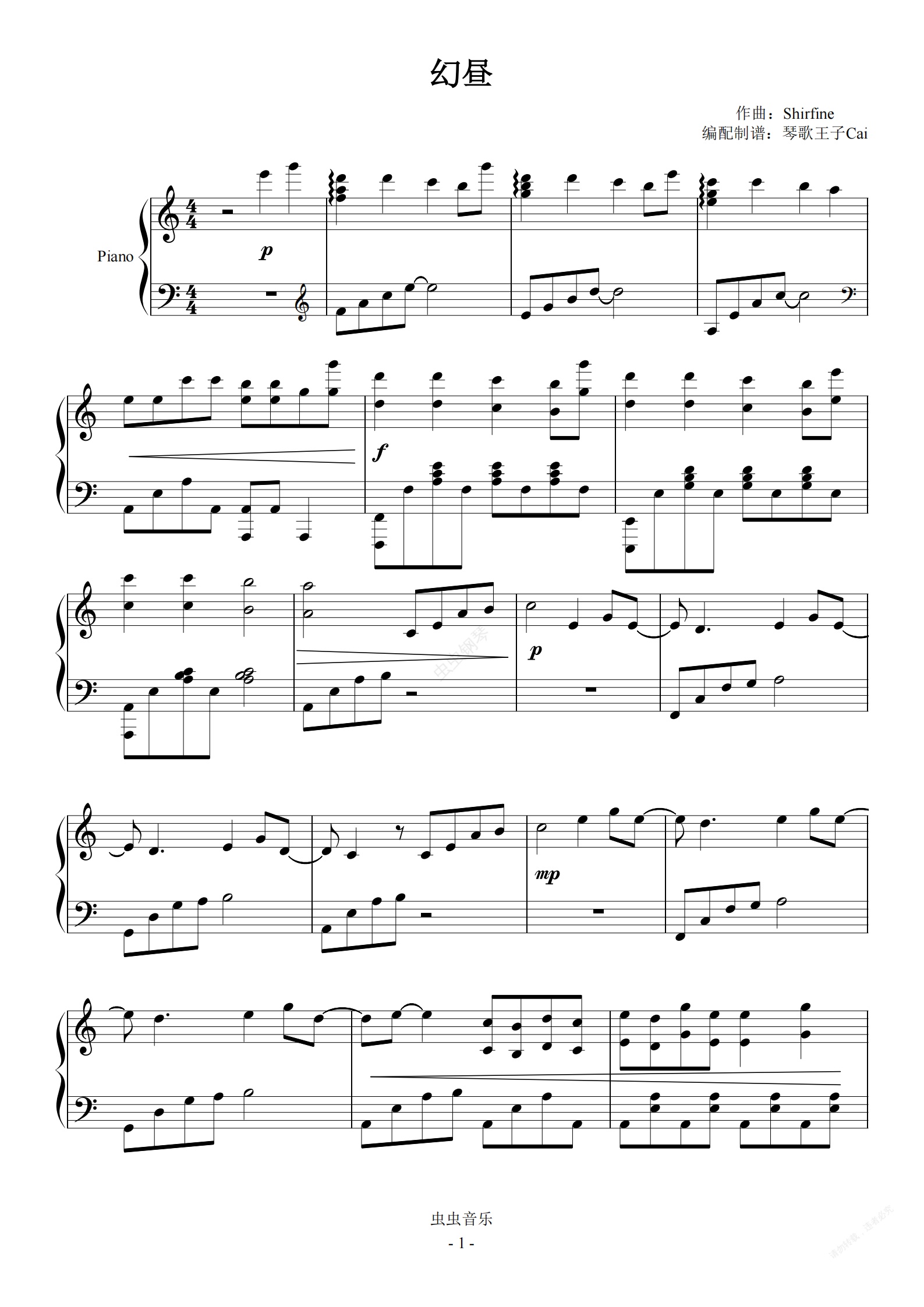 钢琴谱:幻昼(琴歌王子Cai钢琴版)C调