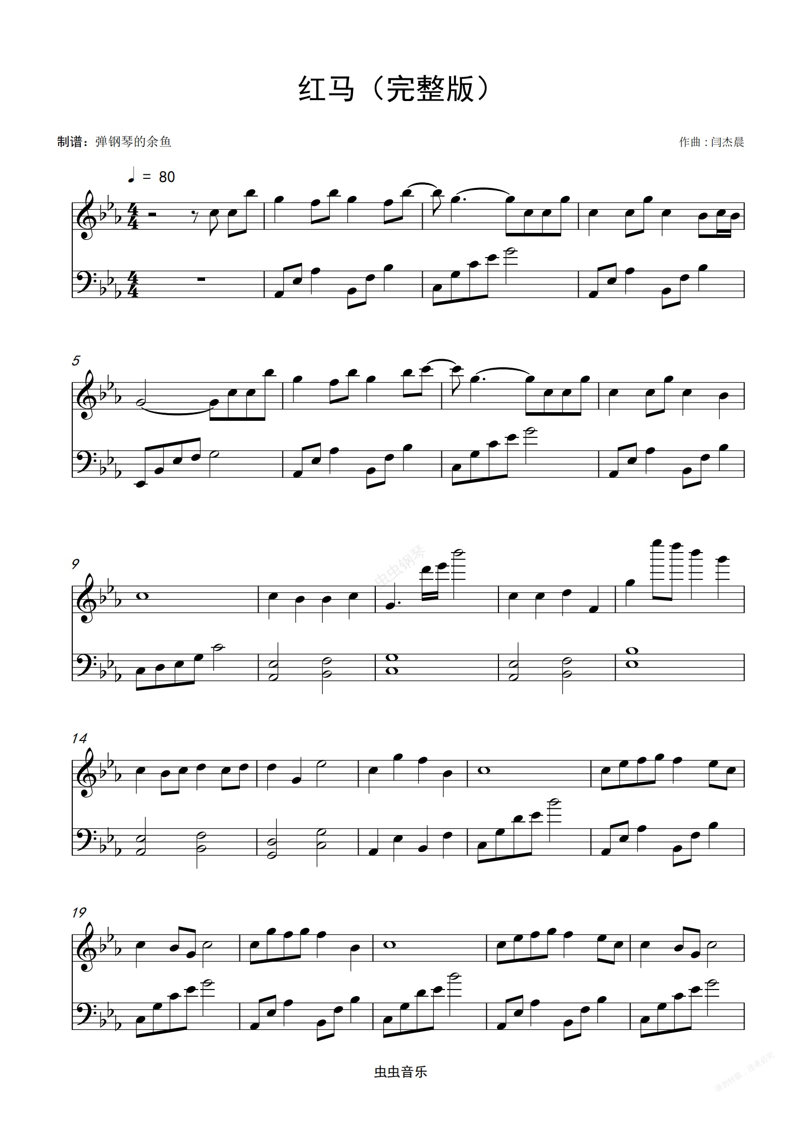 钢琴谱:《红马》新手好听易学还原版-bE调-抖音热歌-弹钢琴的余鱼编配
