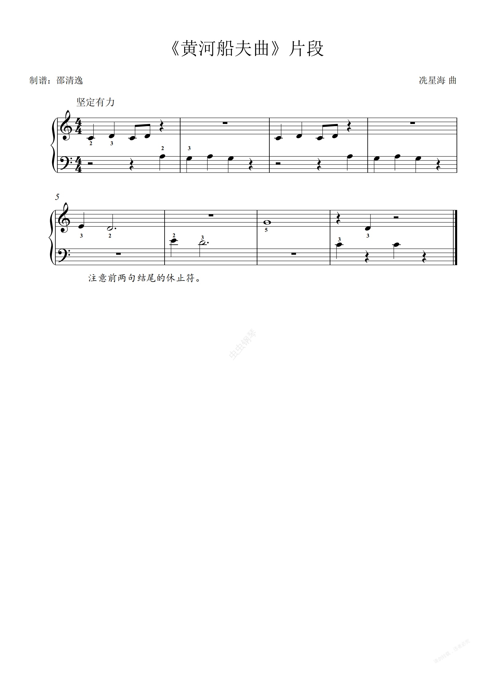 钢琴谱:钢琴基础教程1:4.《黄河船夫曲》片段