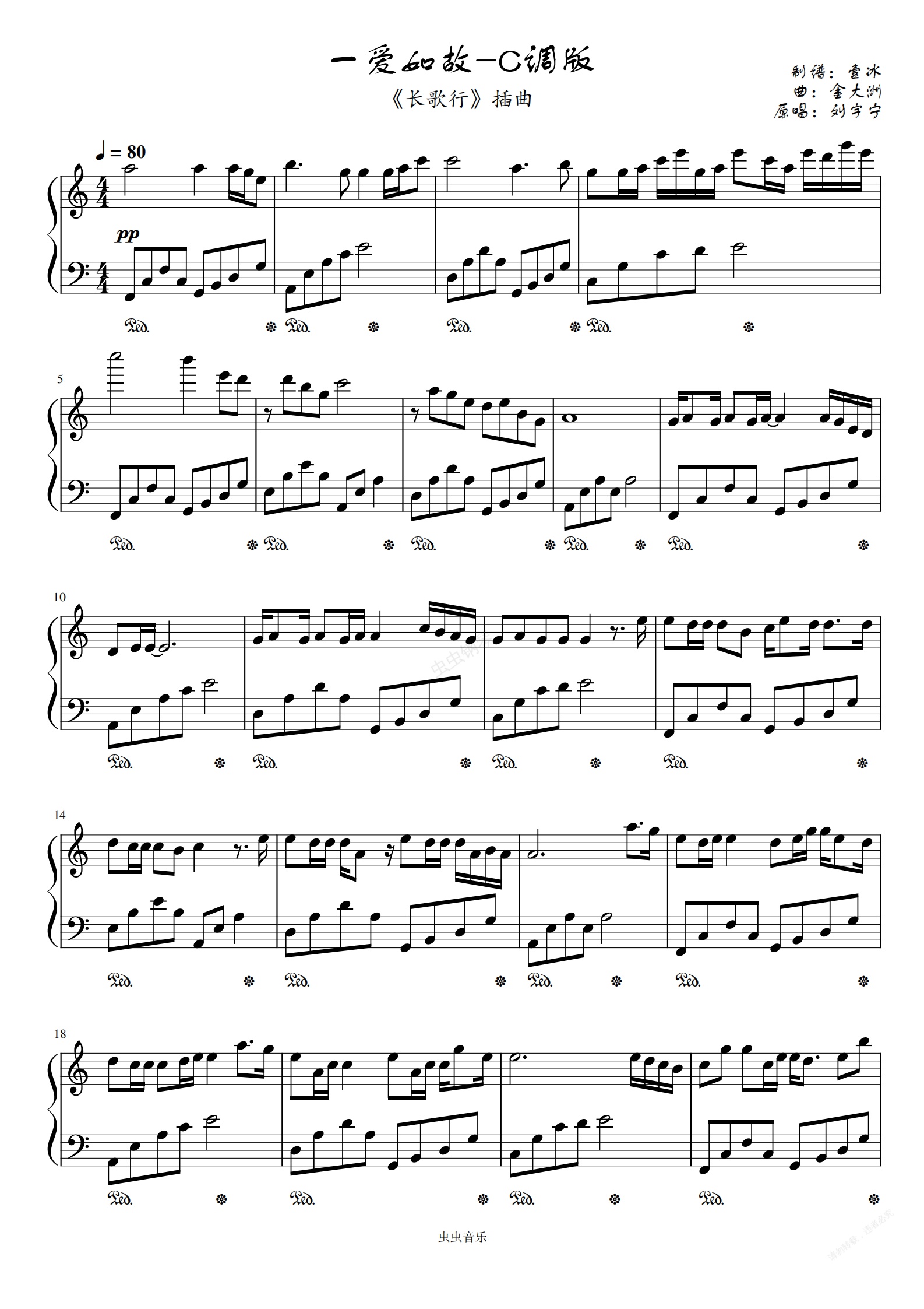钢琴谱:一爱如故//《长歌行》插曲-C调简单易上手