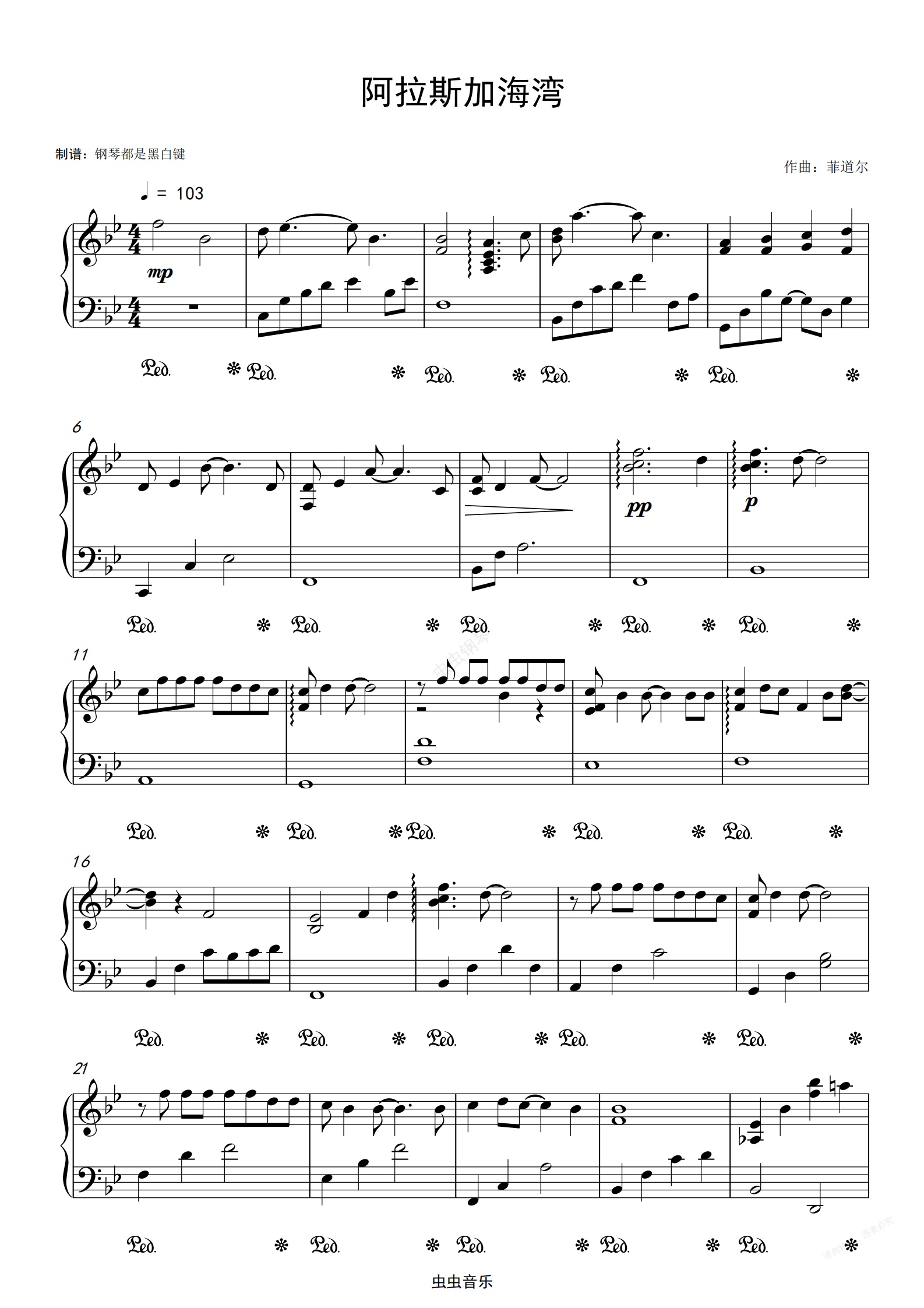 钢琴谱:阿拉斯加海湾 超好听 精品钢琴独奏
