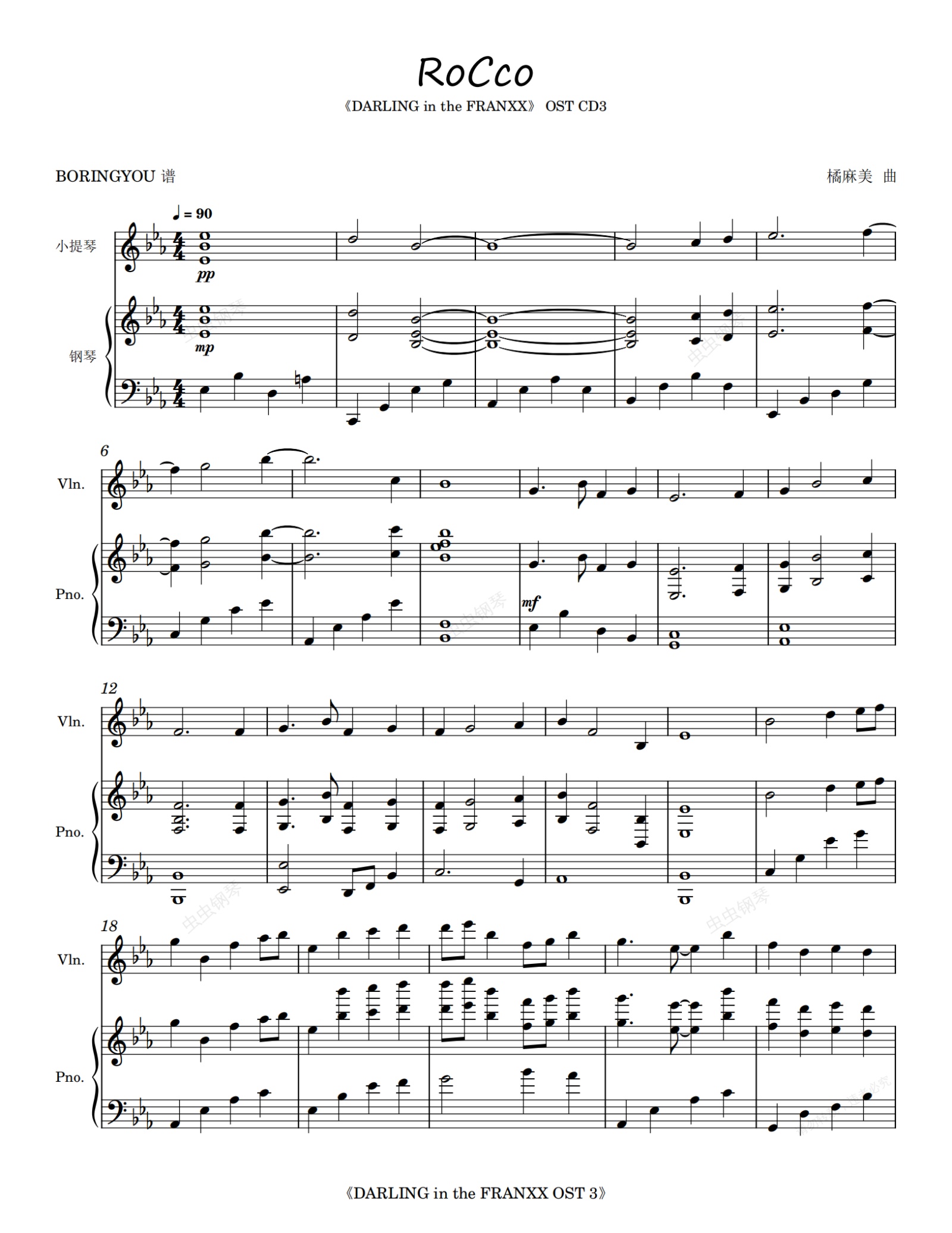 钢琴谱:RoCco(DARLING in the FRANXX OST二重奏)