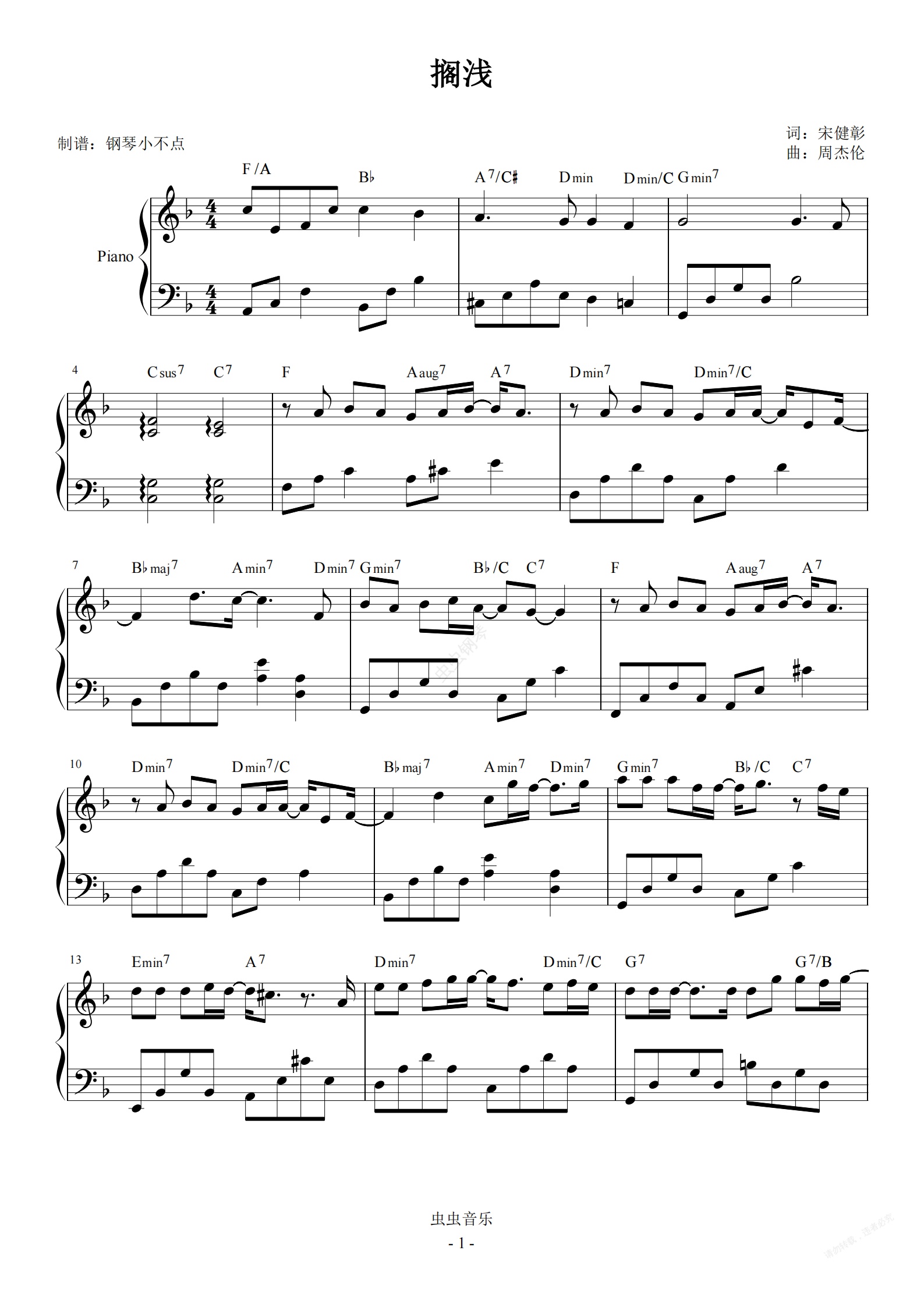钢琴谱:搁浅 {简易 唯美】