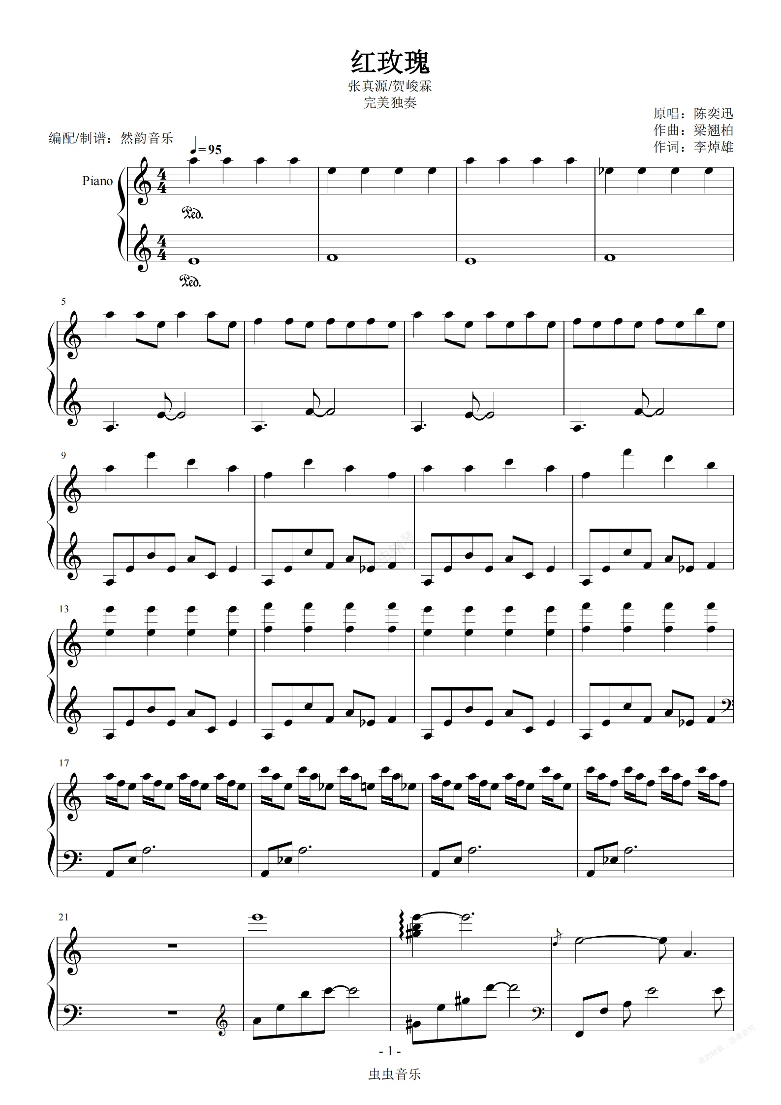 钢琴谱:红玫瑰-张真源/贺峻霖 完美独奏【然韵音乐编配】TNT时代少年团公演