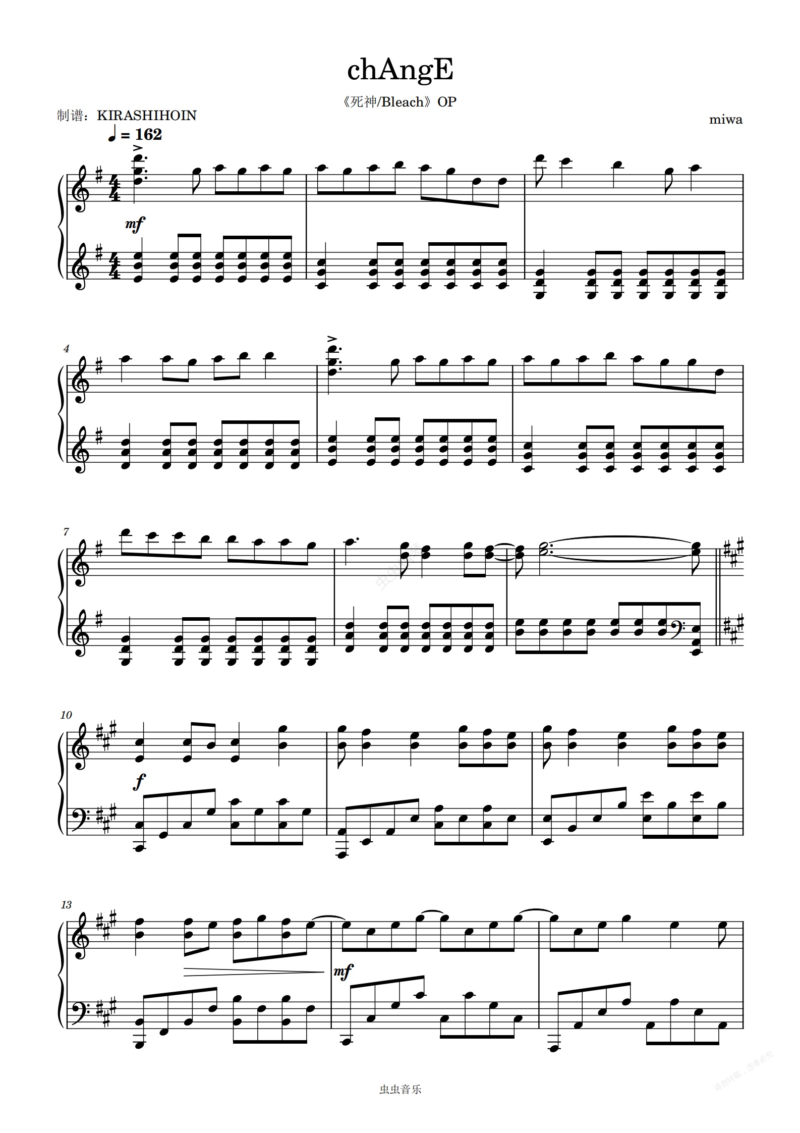 钢琴谱:chAngE(《死神/Bleach》OP)