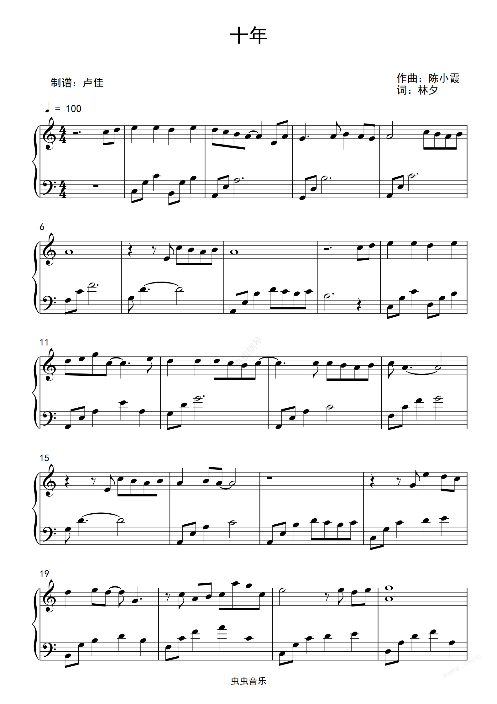 钢琴谱:十年