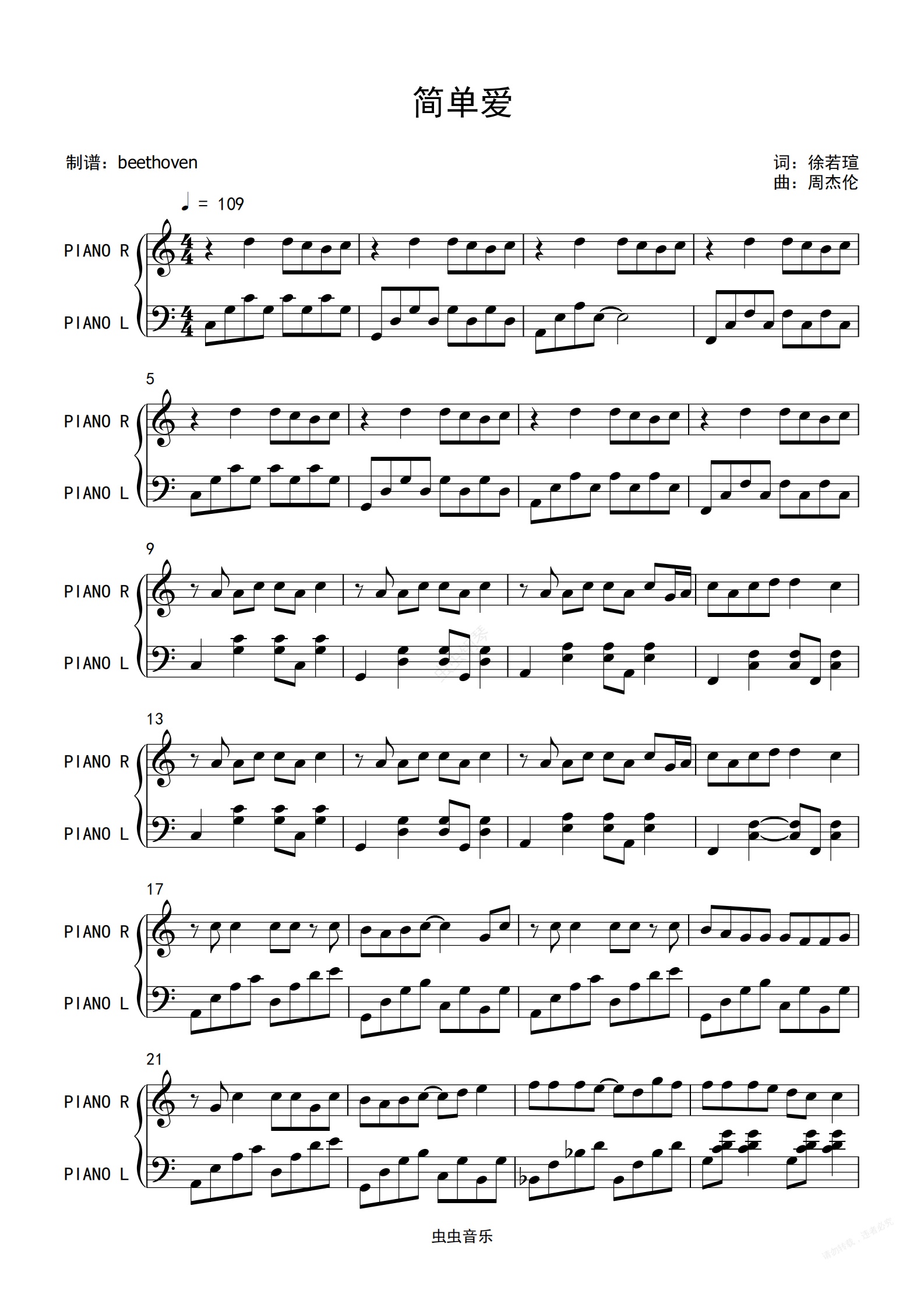 钢琴谱:简单爱(钢琴独奏)-周杰伦