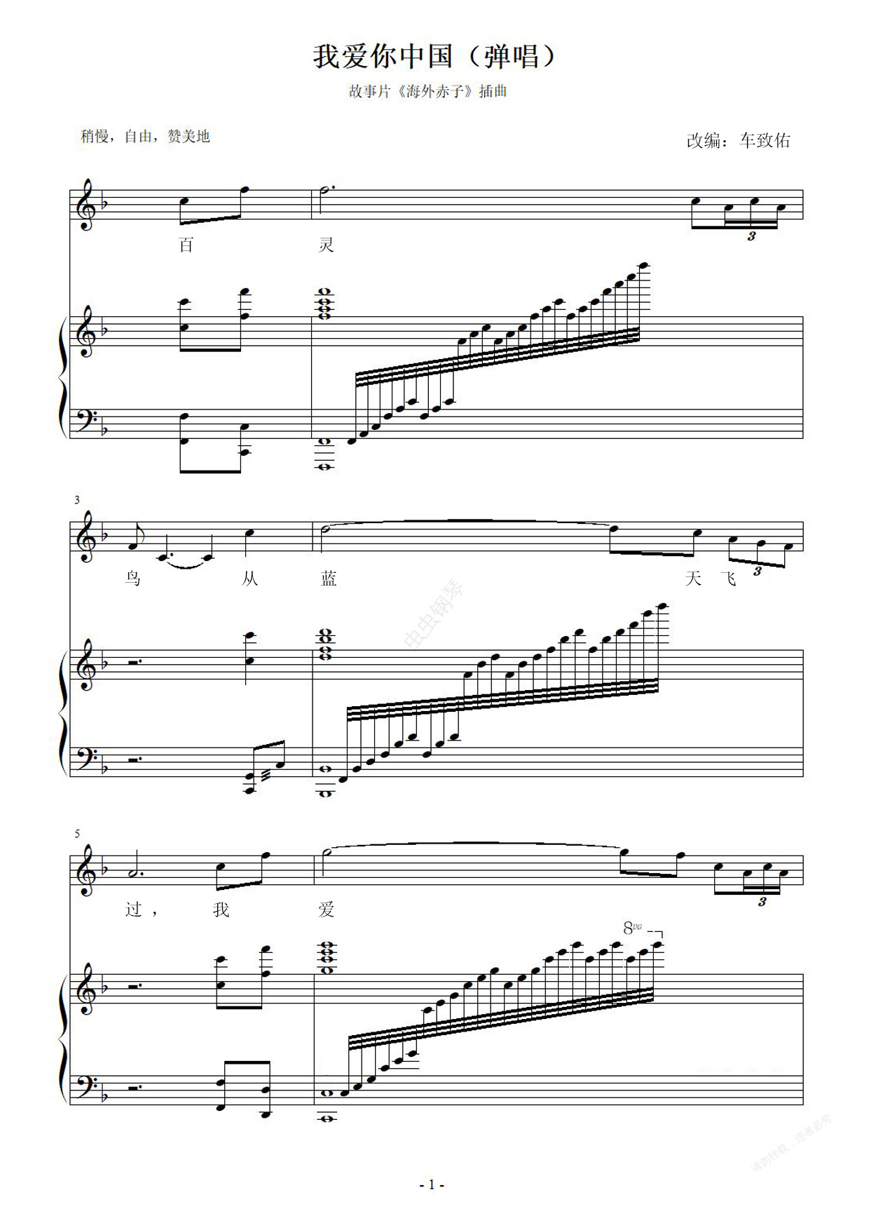 钢琴谱:我爱你中国(伴奏弹唱版)