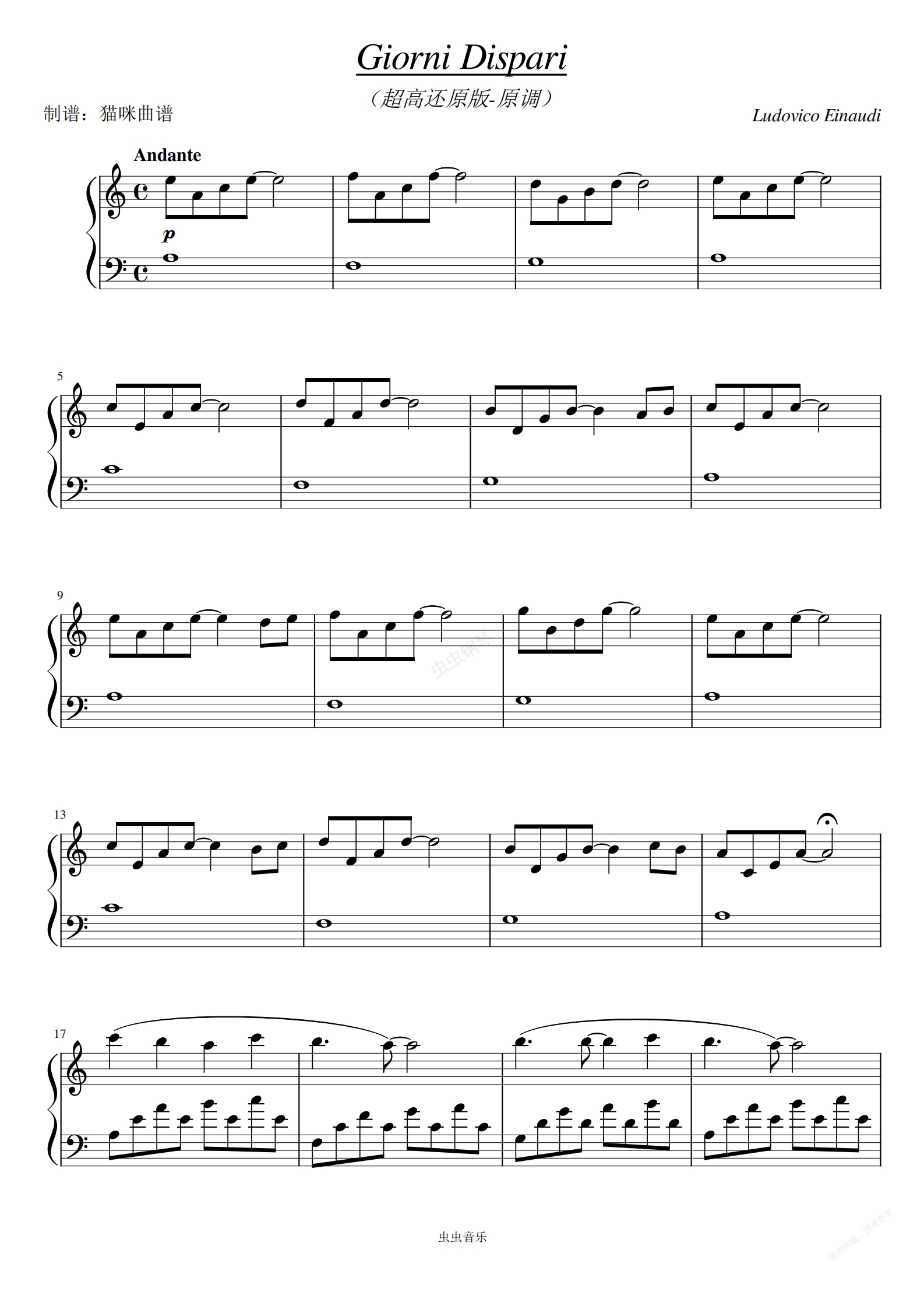 钢琴谱:《Giorni Dispari》超高还原版-C调