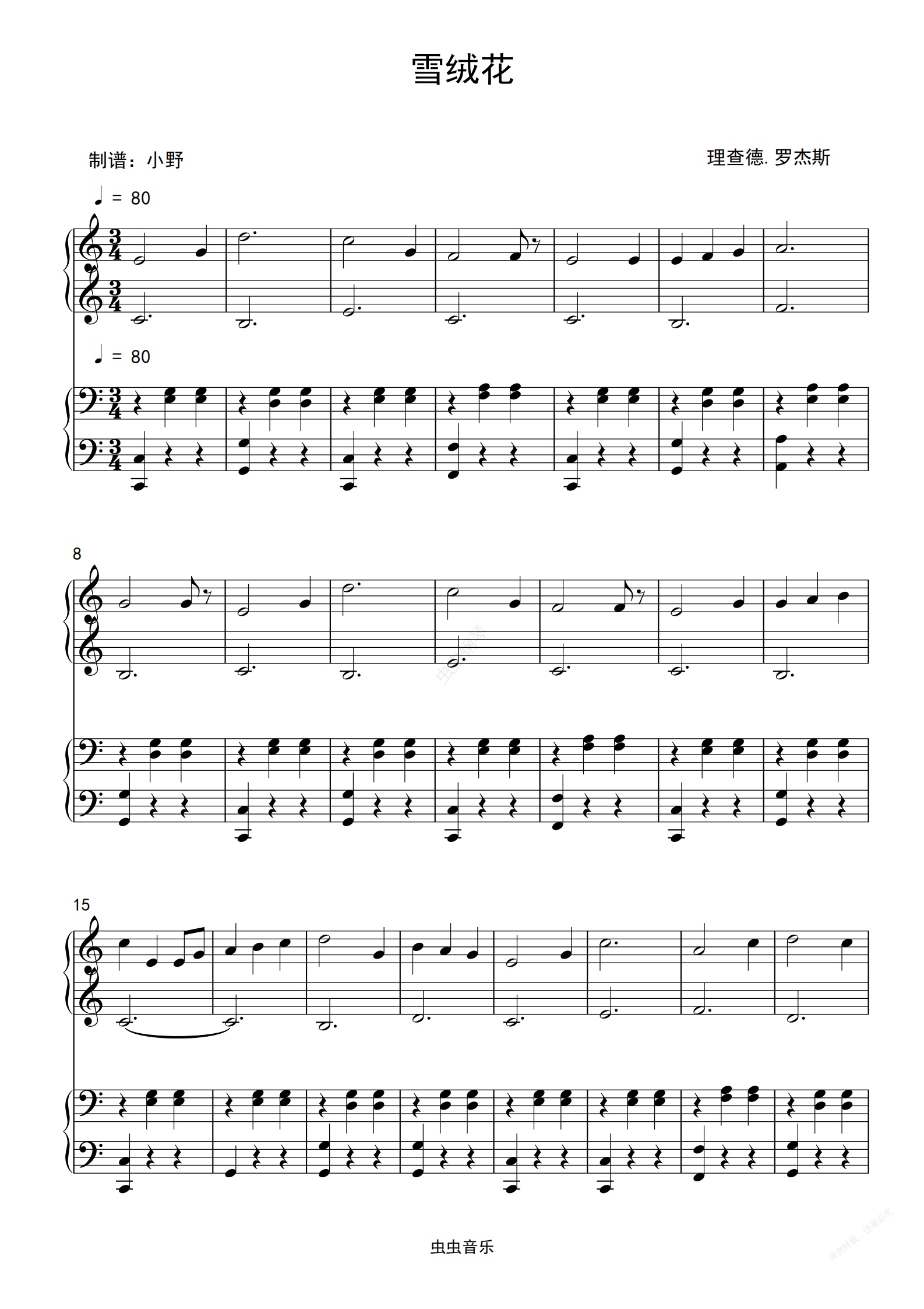 钢琴谱:雪绒花