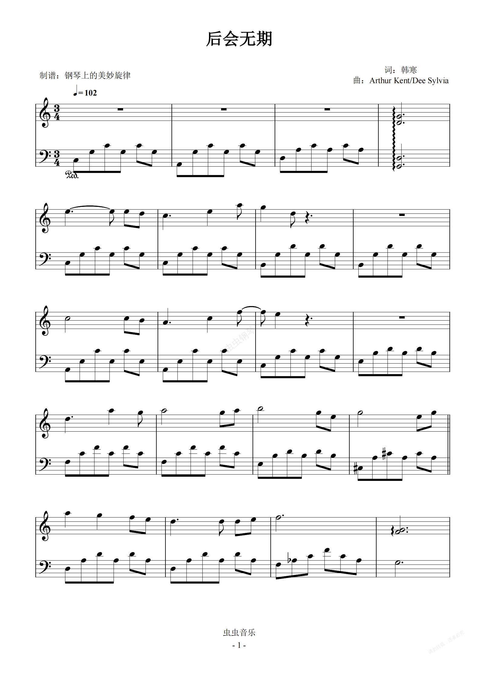钢琴谱:后会无期 邓紫棋 C调简易版
