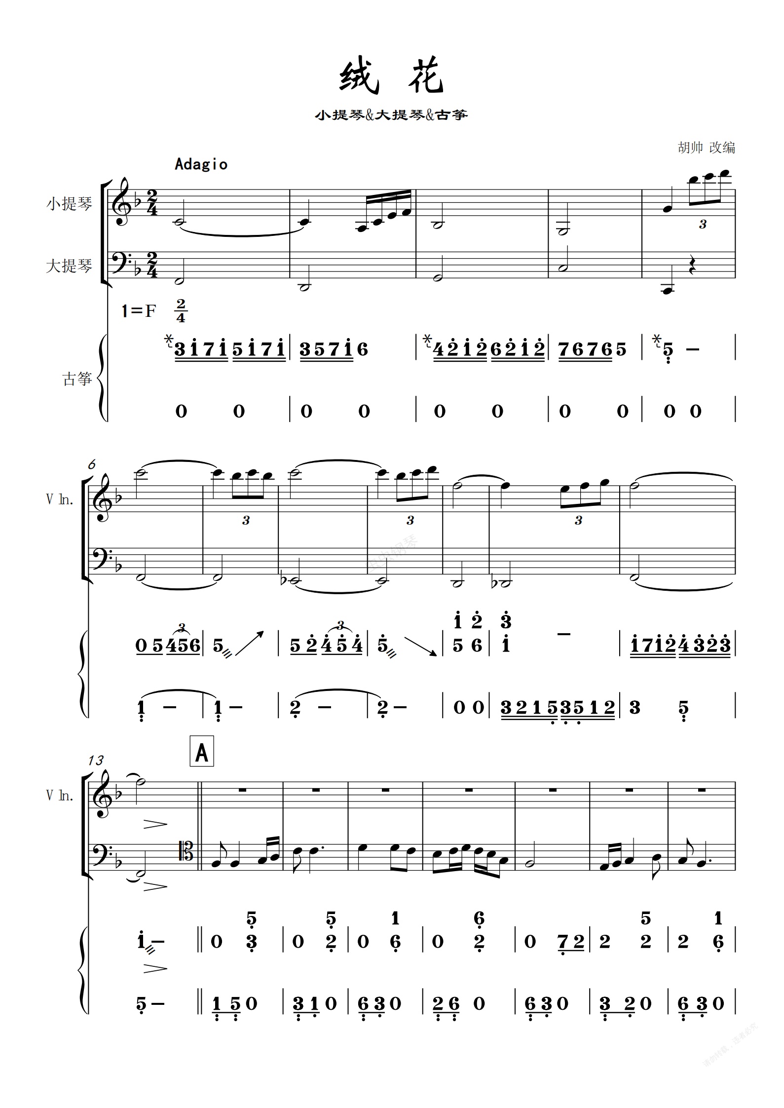钢琴谱:绒花【古筝,大提琴,小提琴】