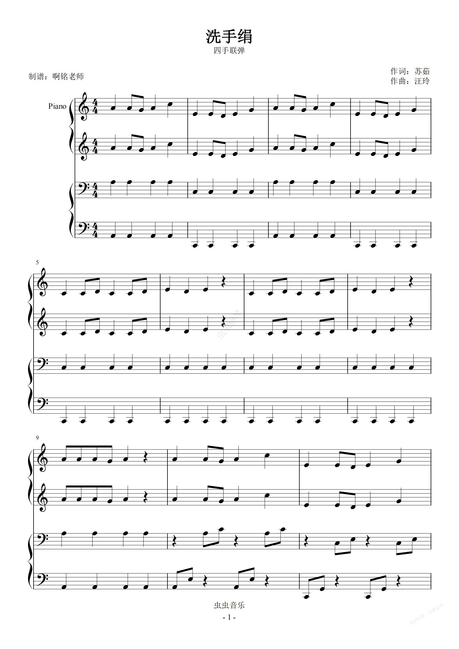 钢琴谱:洗手绢 【小汤3 四手联弹】