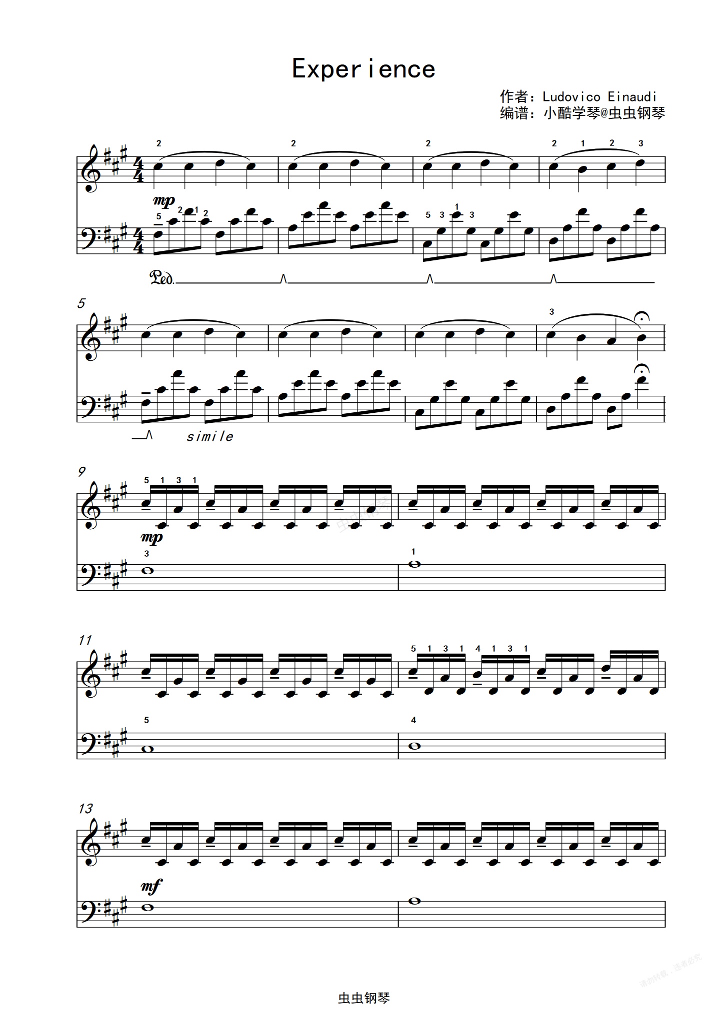 钢琴谱:《Experience》原调死亡八度钢琴版完整教学——主页有视频