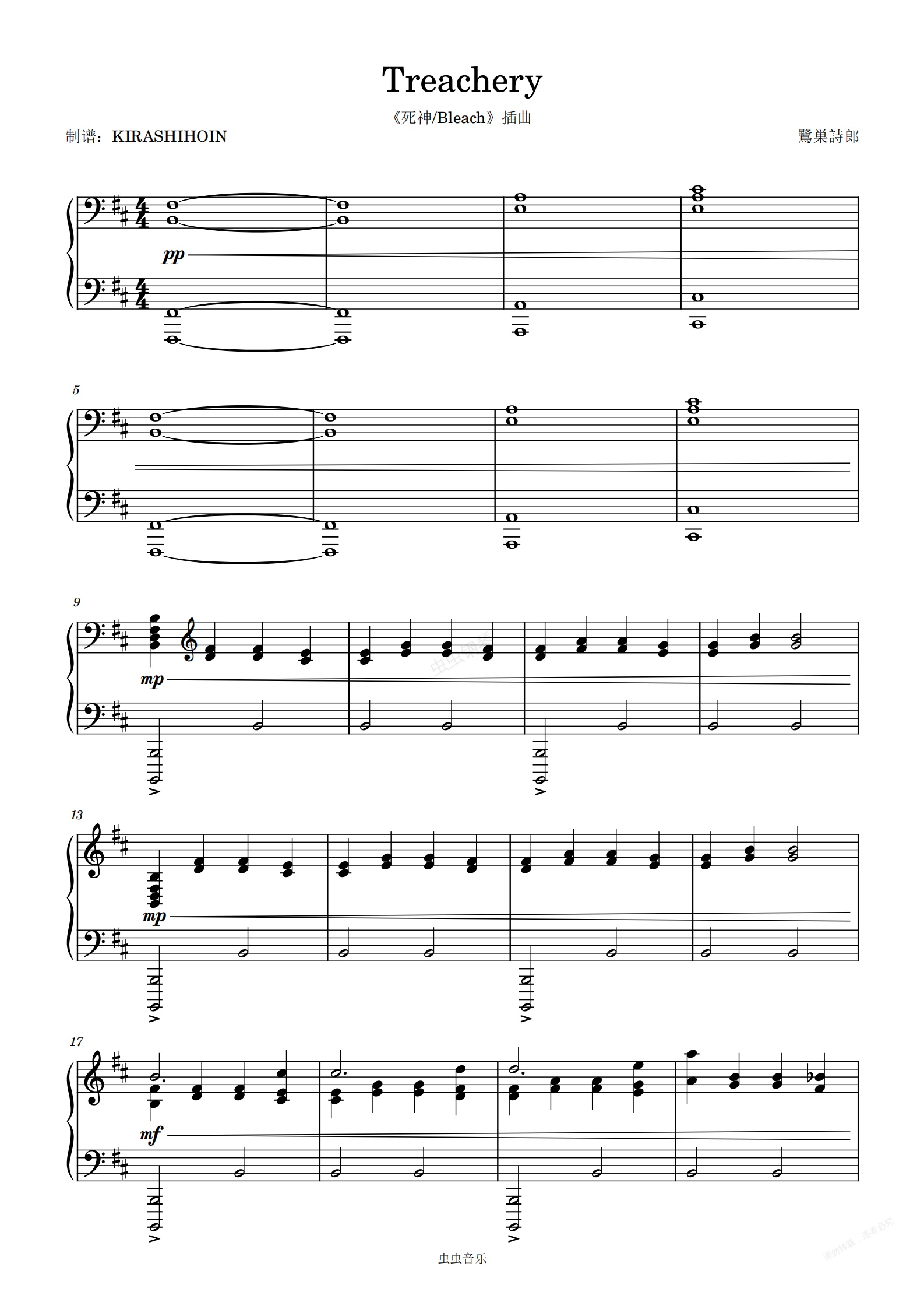 钢琴谱:Treachery(《死神/Bleach》插曲)