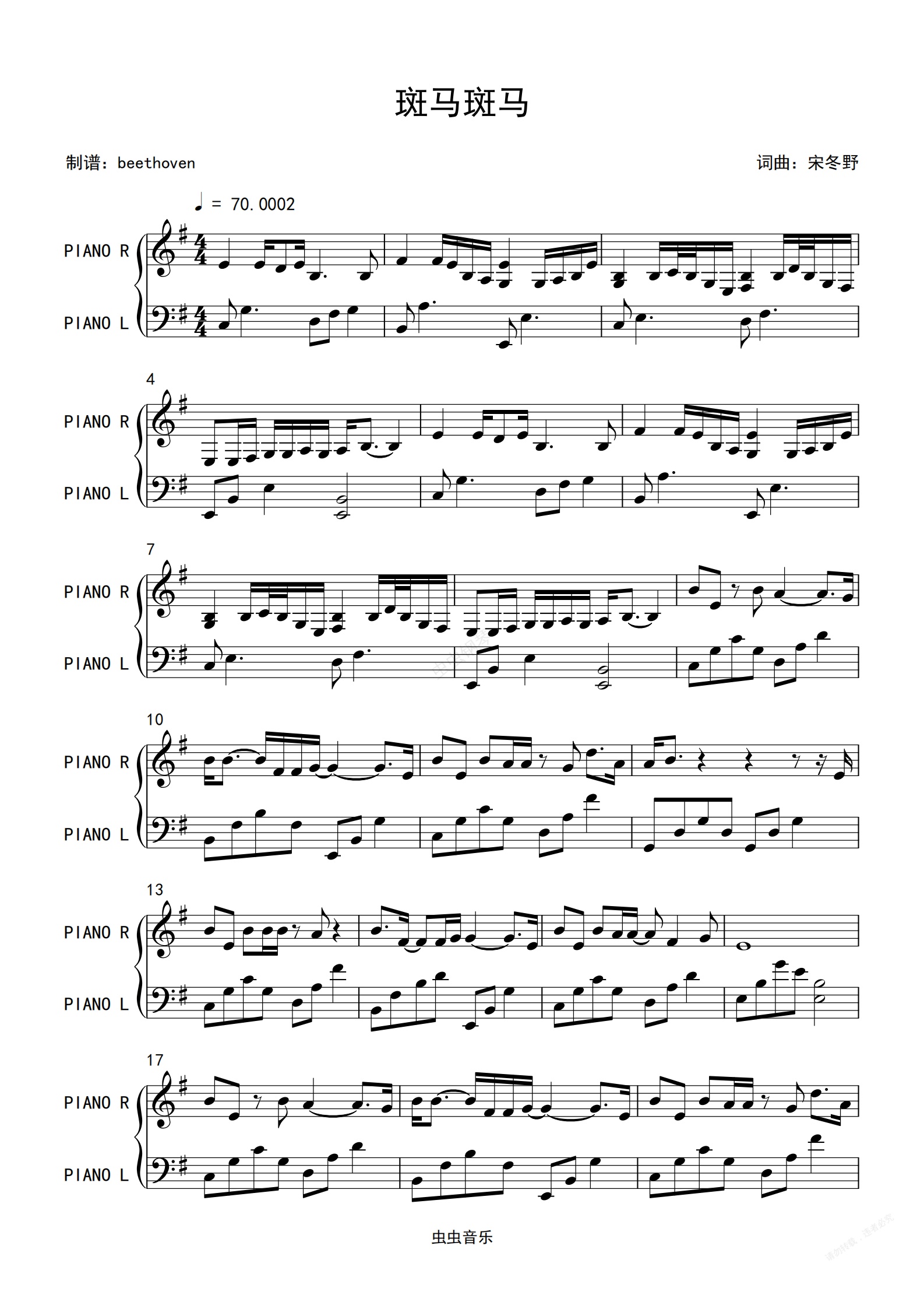钢琴谱:斑马斑马_钢琴独奏—宋东野