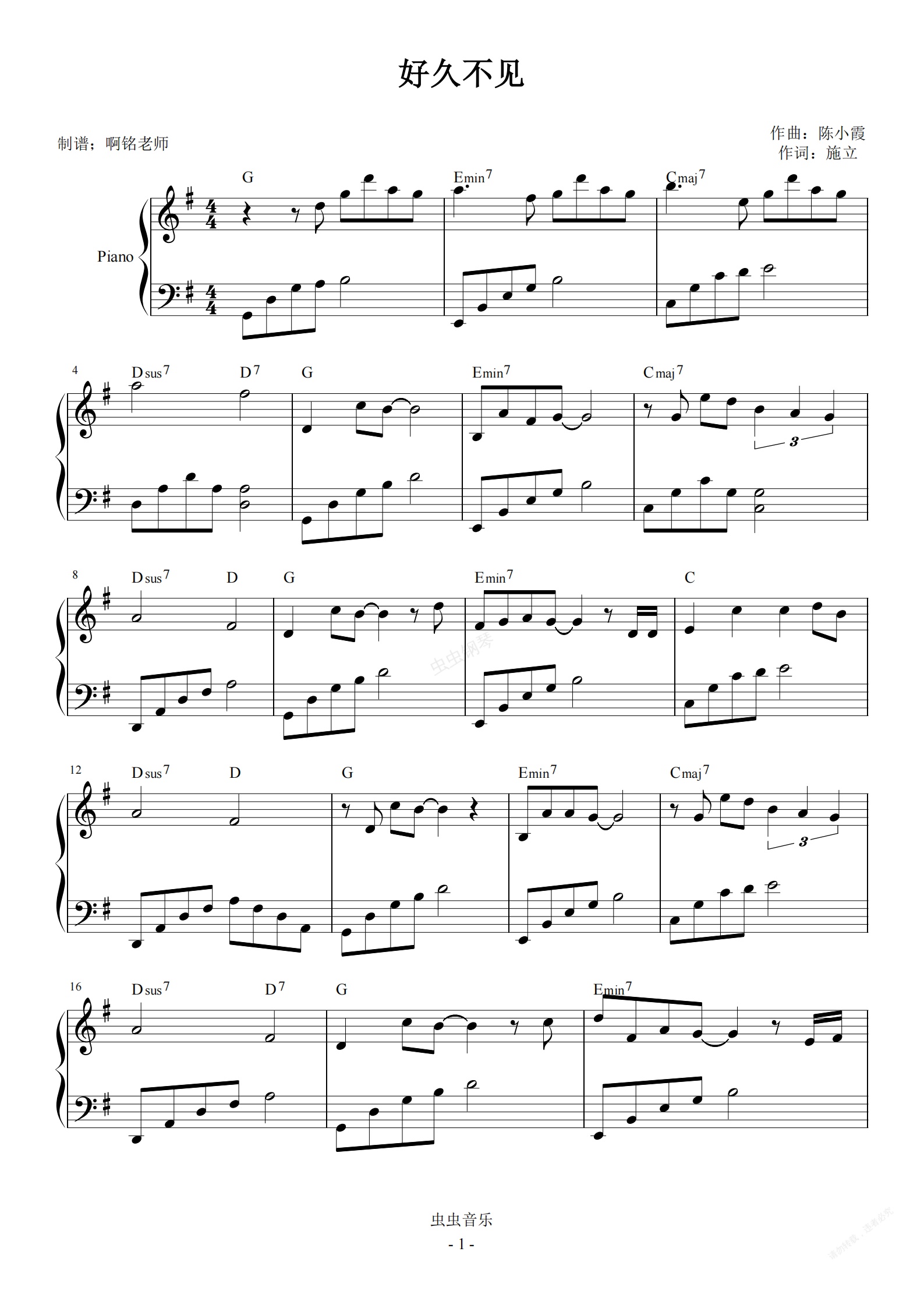 钢琴谱:好久不见【简易 动听】
