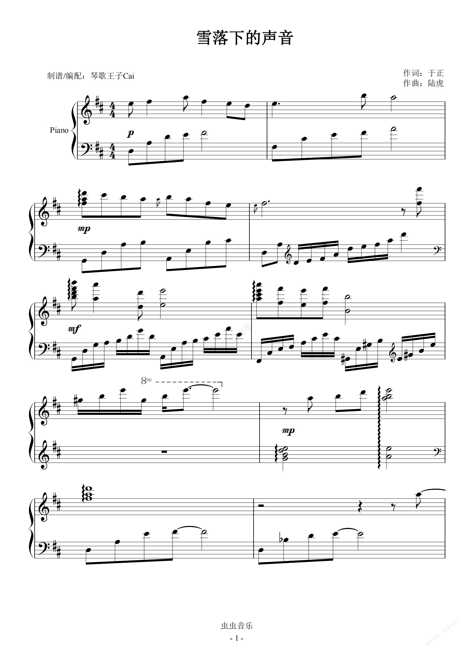 钢琴谱:雪落下的声音(琴歌王子Cai钢琴版)原调