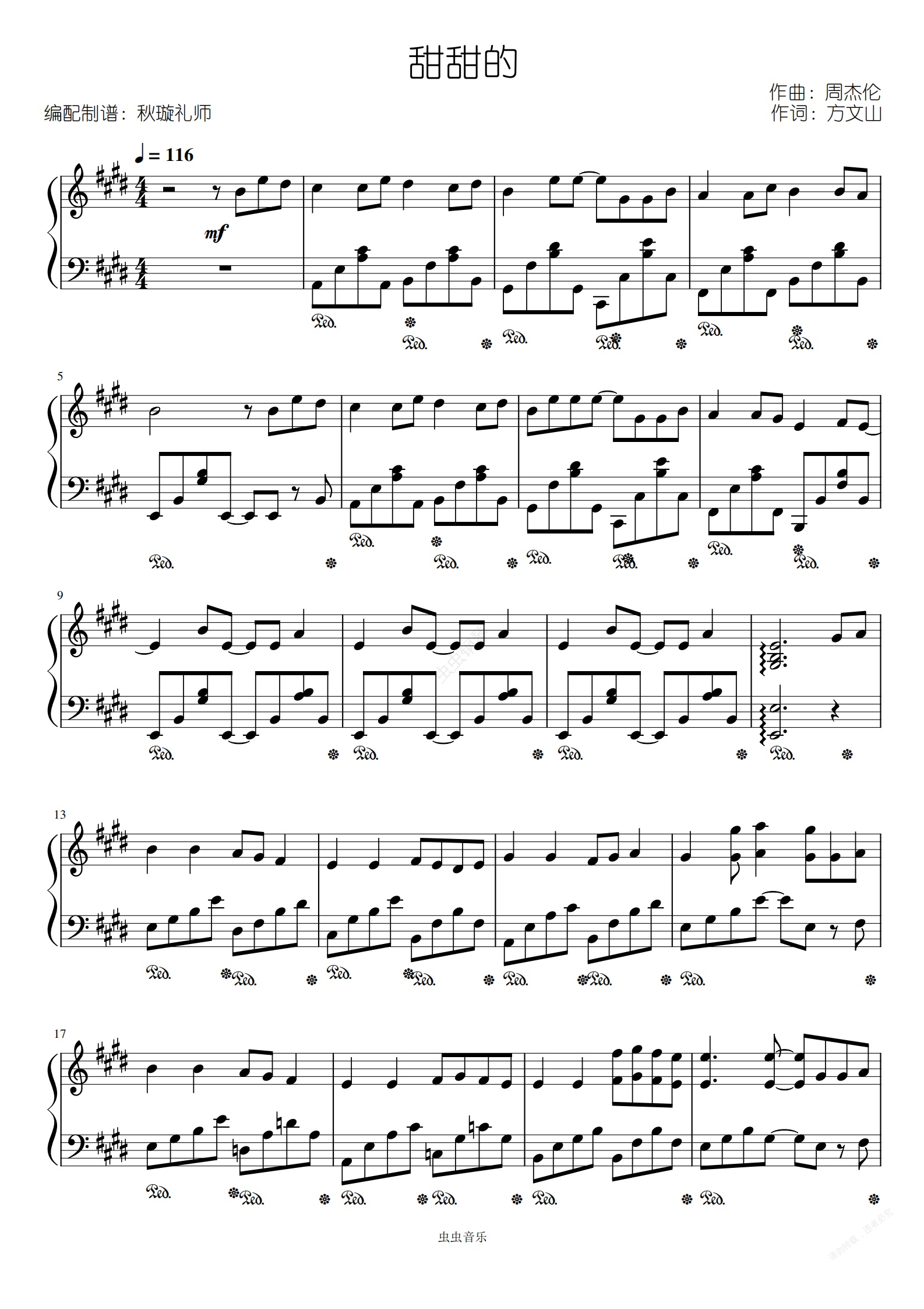 钢琴谱:甜甜的—周杰伦[杰迷演奏级]