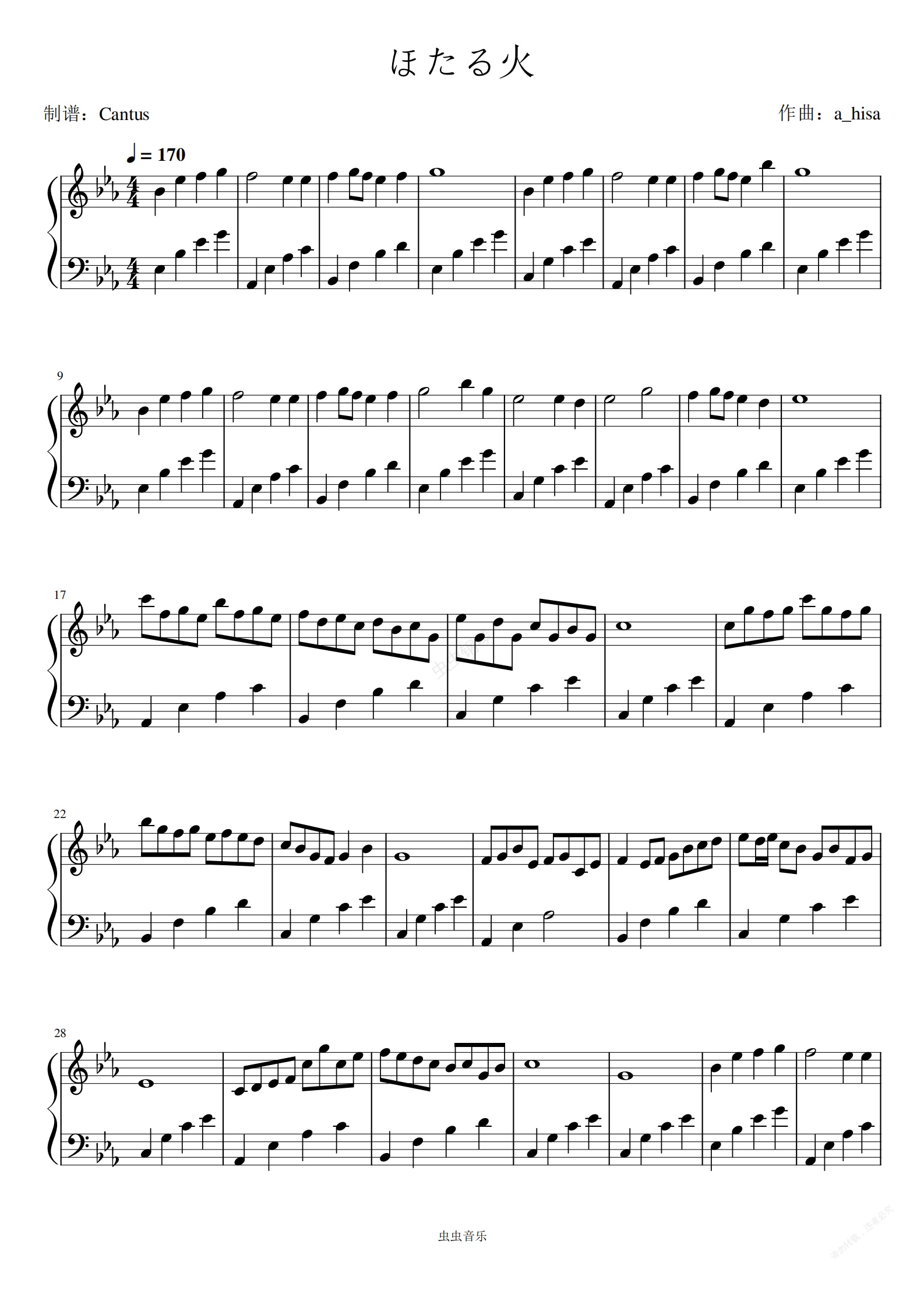 钢琴谱:ほたる火/萤火虫之光-a_hisa