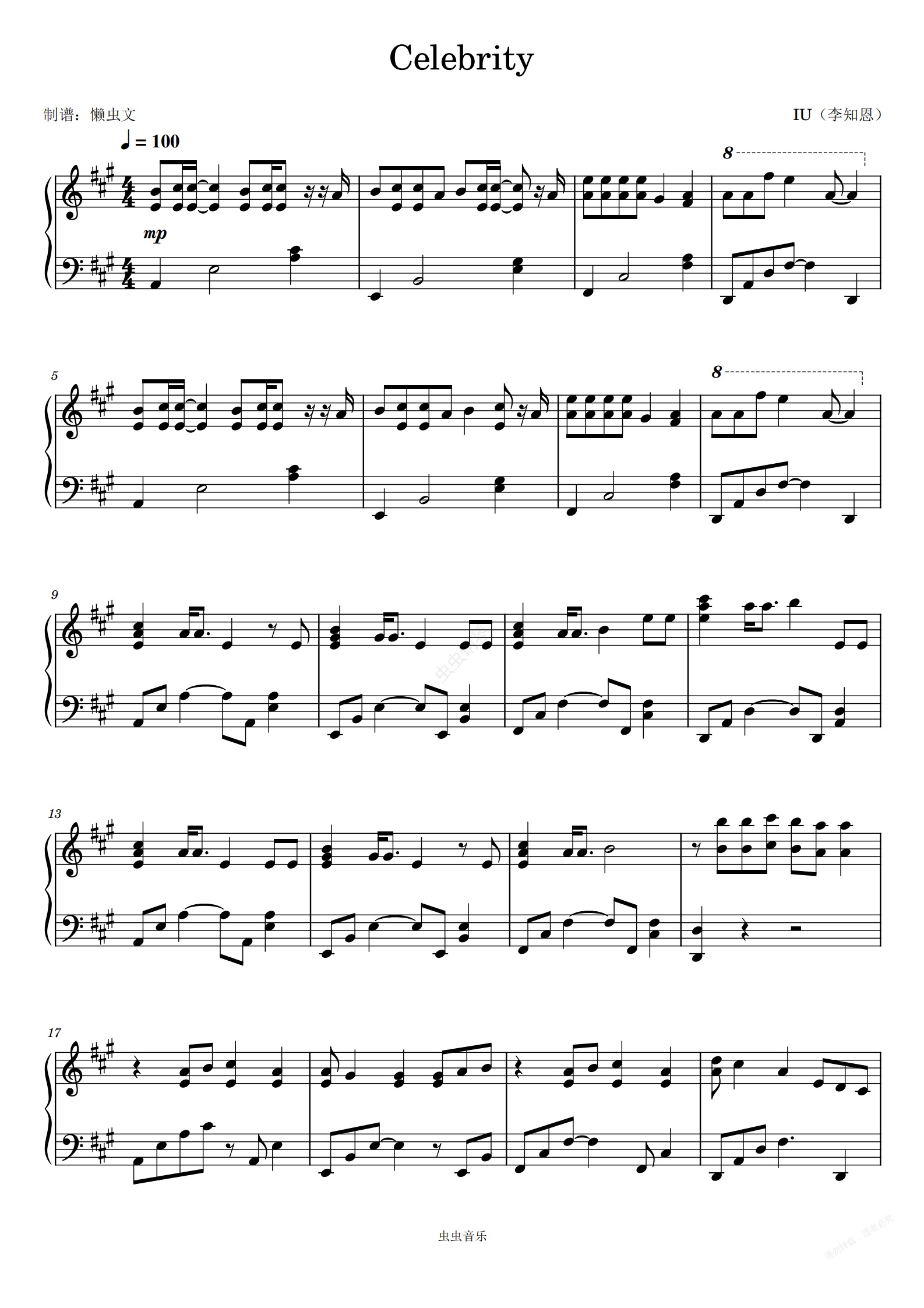 钢琴谱:《Celebrity》-IU(李知恩)