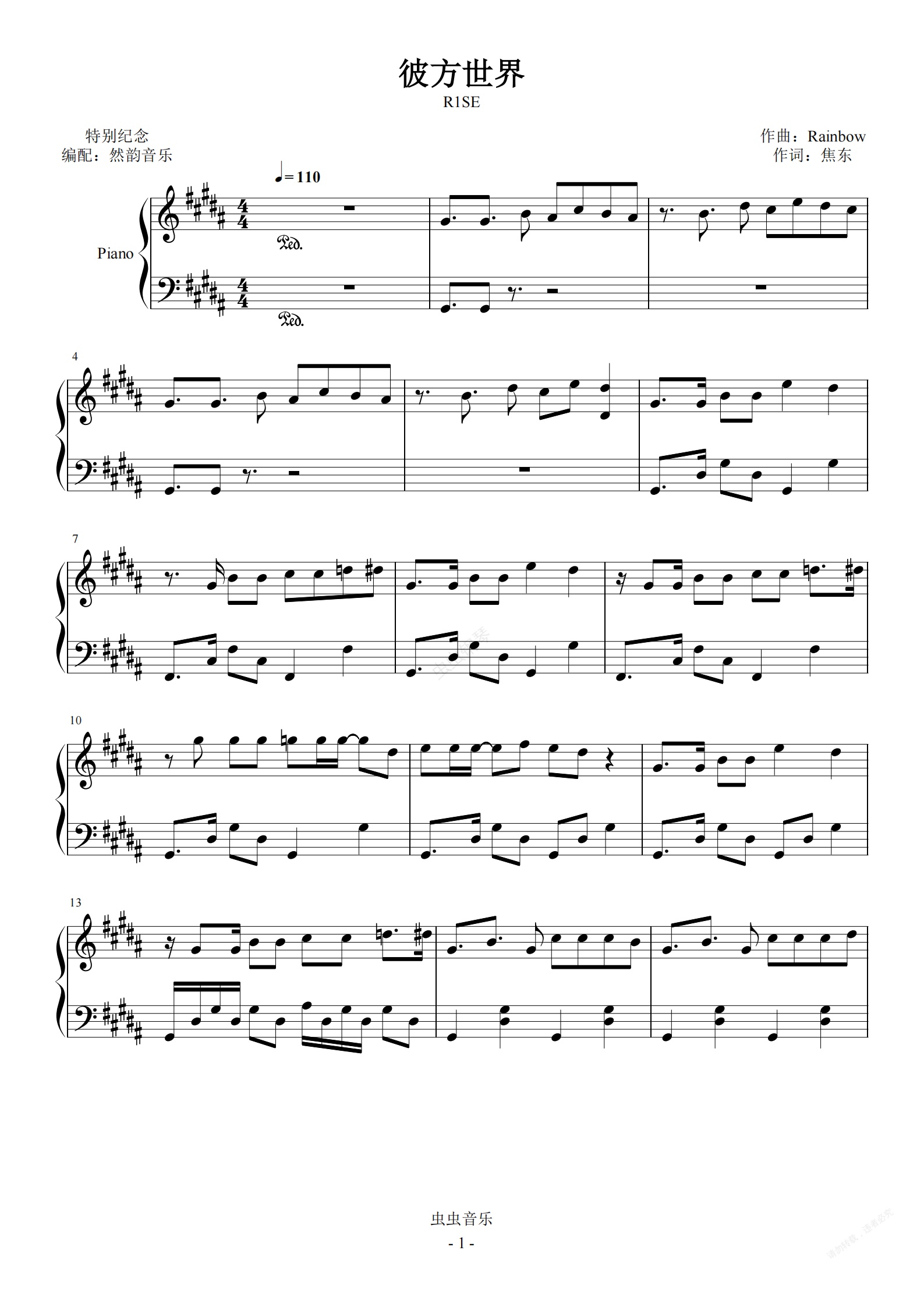 钢琴谱:R1SE-彼方世界 钢琴完美还原【然韵音乐编配】