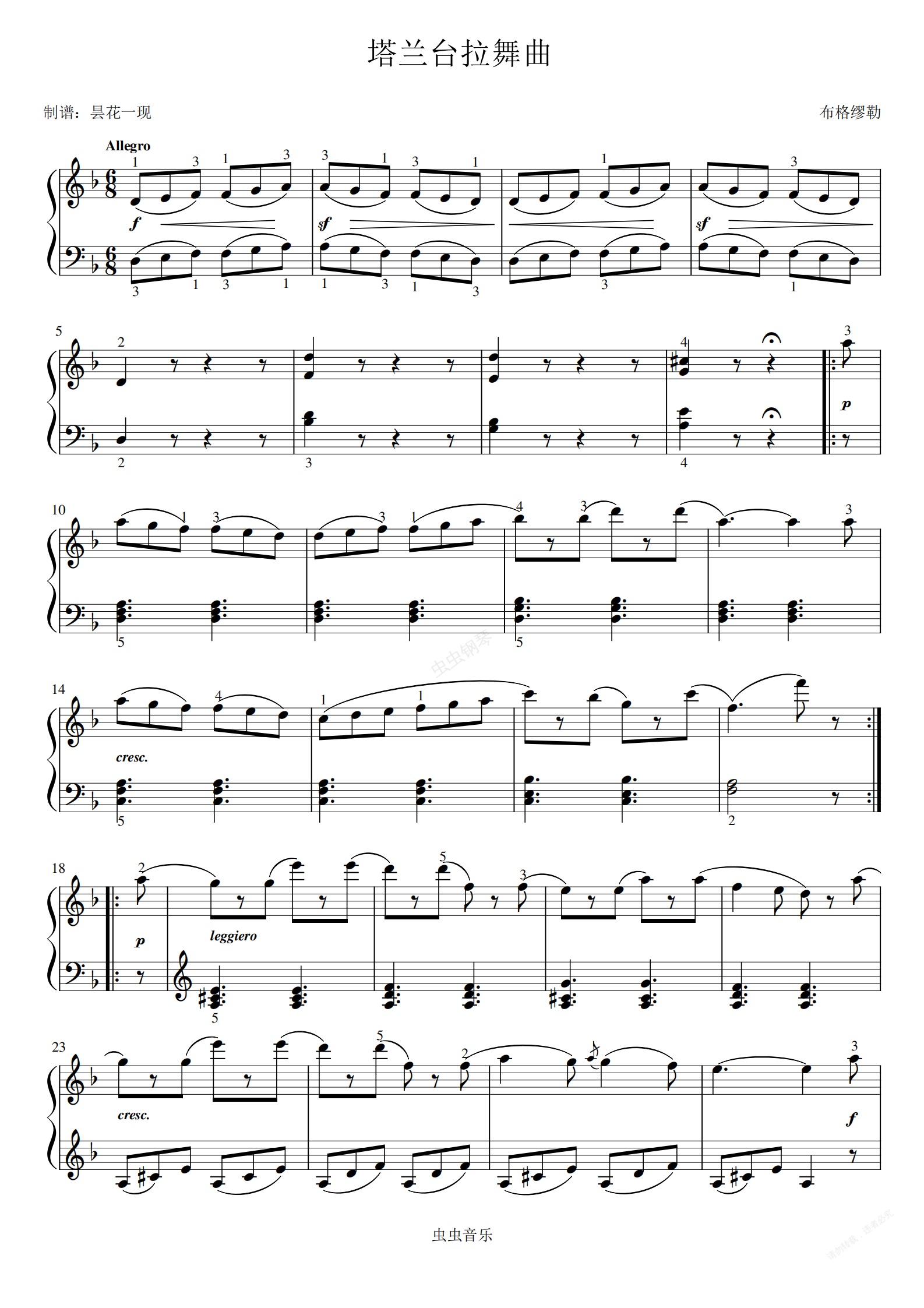 钢琴谱:塔兰台拉舞曲