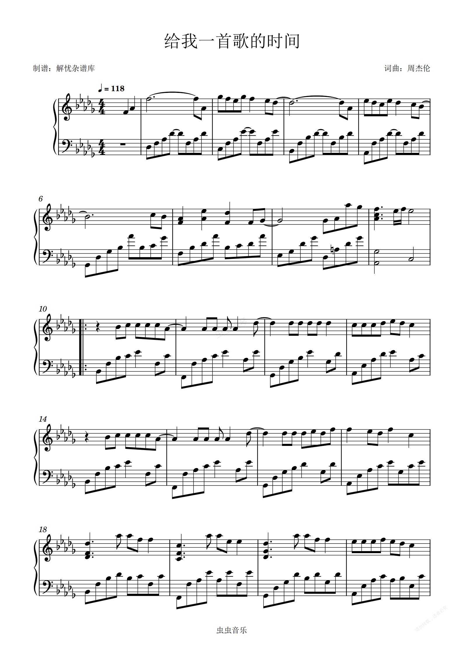 钢琴谱:给我一首歌的时间