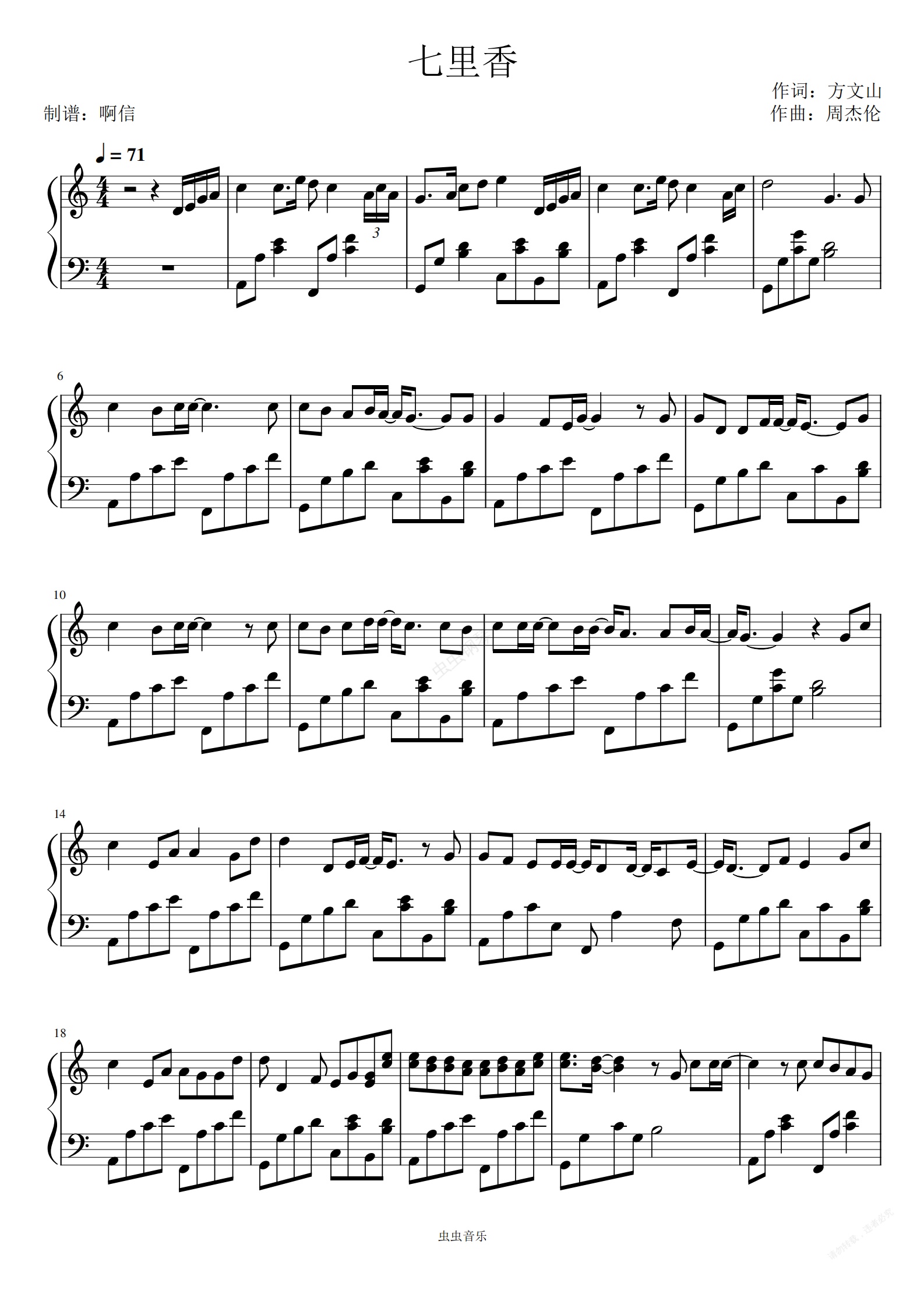 钢琴谱:性价比超高-七里香-C调--啊信改编