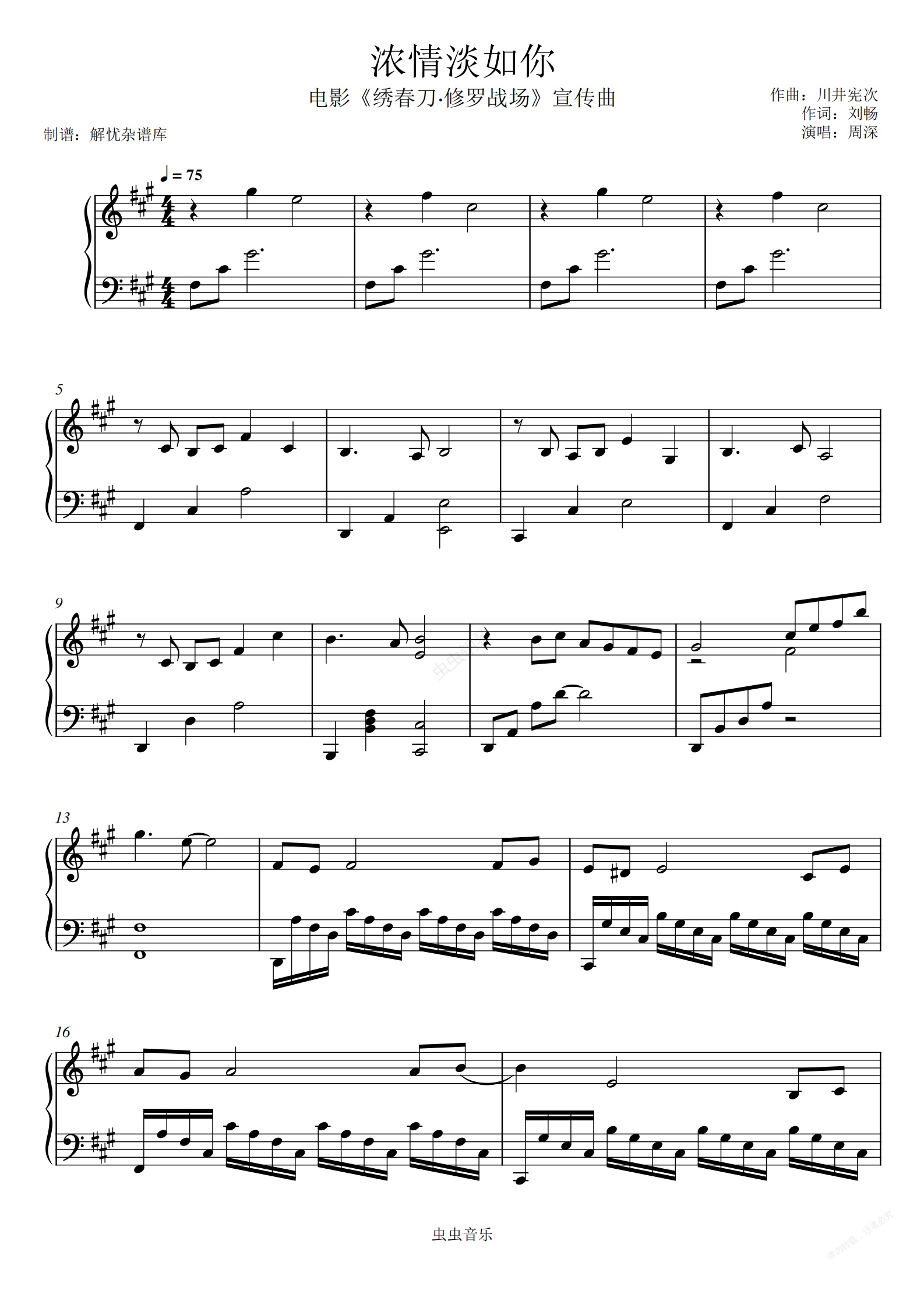 钢琴谱:浓情淡如你《绣春刀·修罗战场》宣传曲