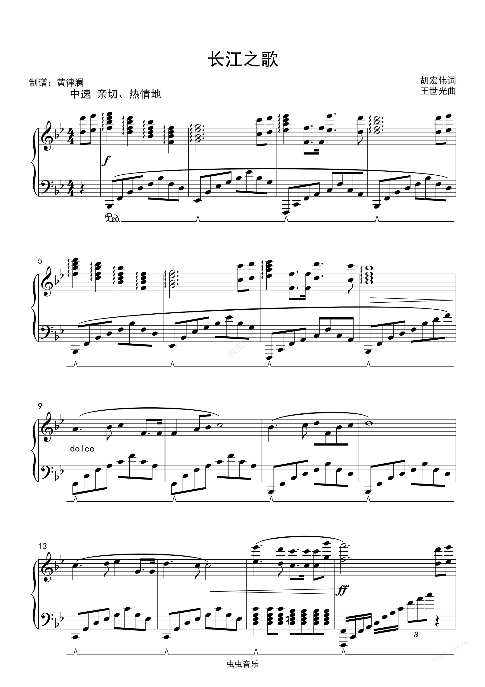 钢琴谱:长江之歌-纪录片《话说长江》的主题曲