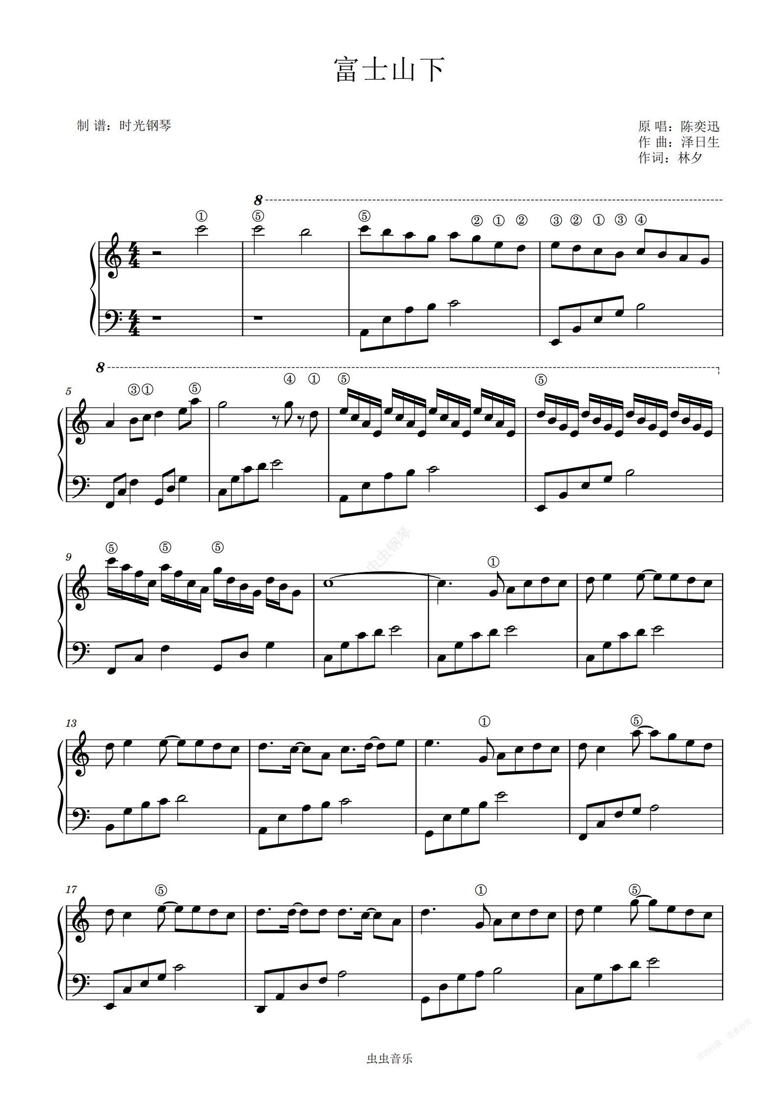 钢琴谱:富士山下