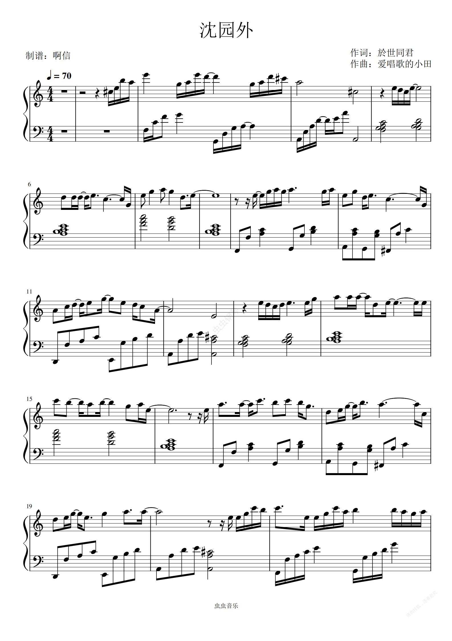 钢琴谱:性价比超高-沈园外-C调--啊信改编