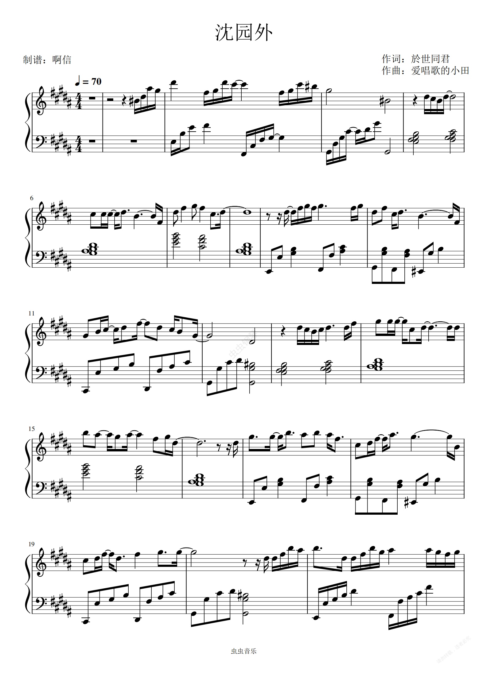 钢琴谱:极限原版-沈园外-B调--啊信改编