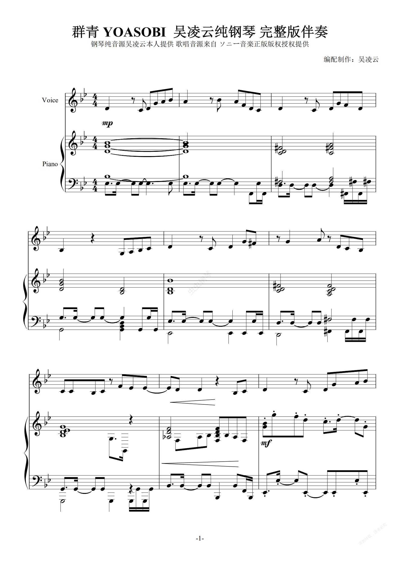 钢琴谱:群青 YOASOBI 吴凌云纯钢琴伴奏 完整版