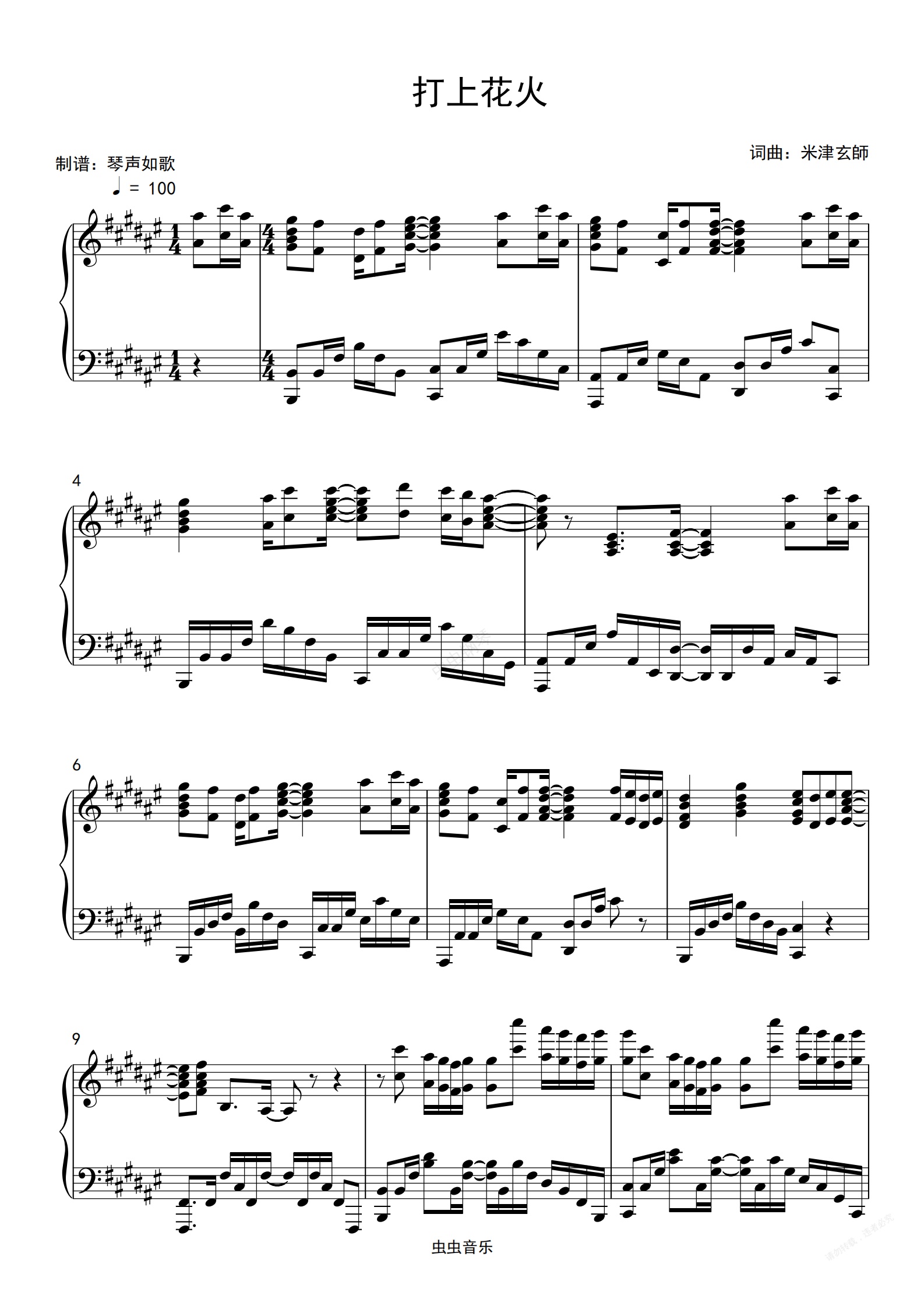钢琴谱:打上花火-米津玄师 极限还原爆燃版